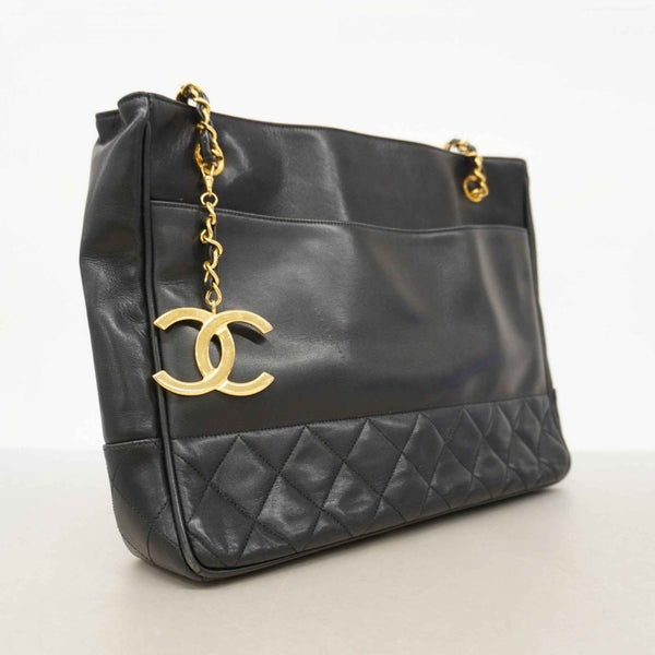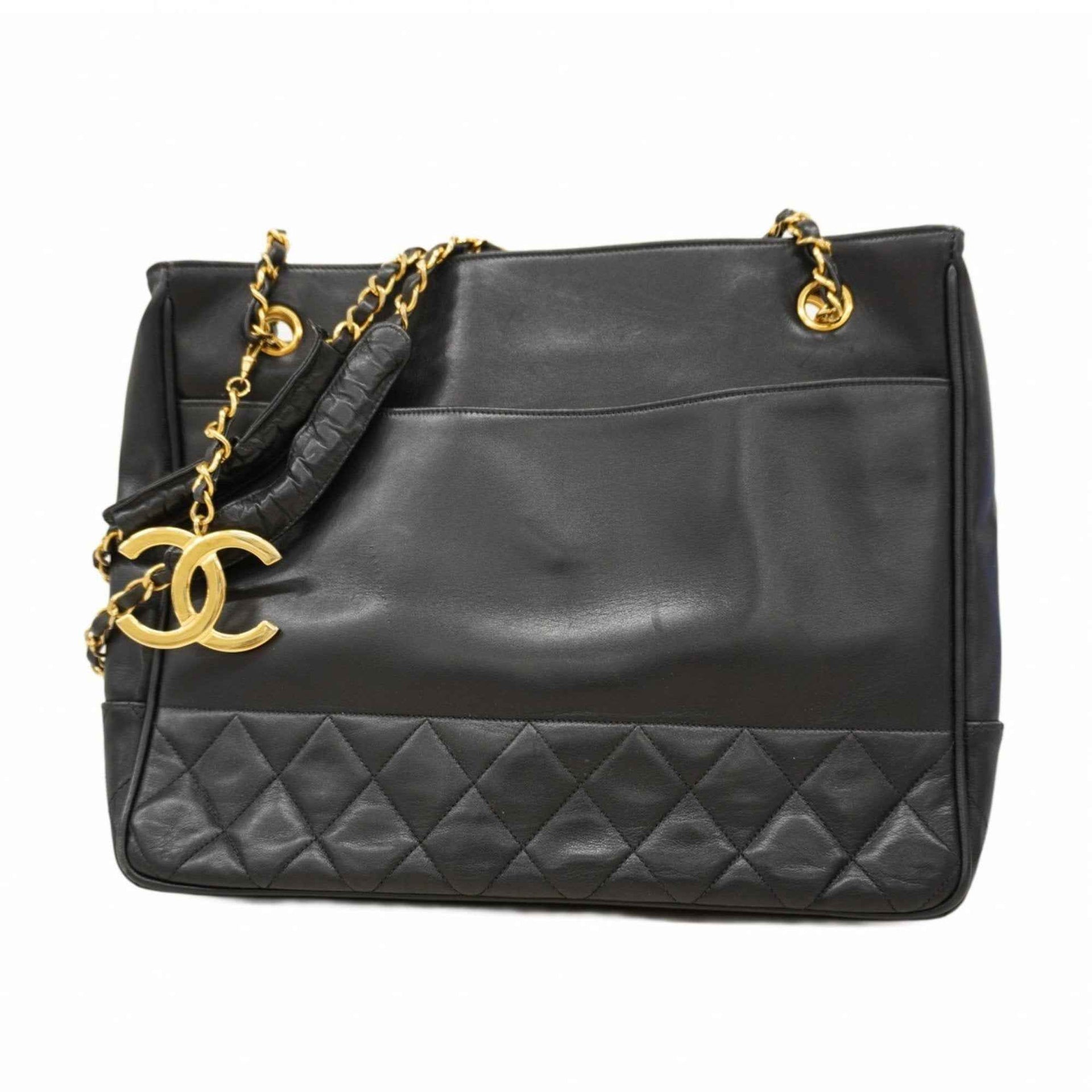 Chanel Matelasse Shoulder Bag with Chain Bag, Lambskin, Black, Women\'s
