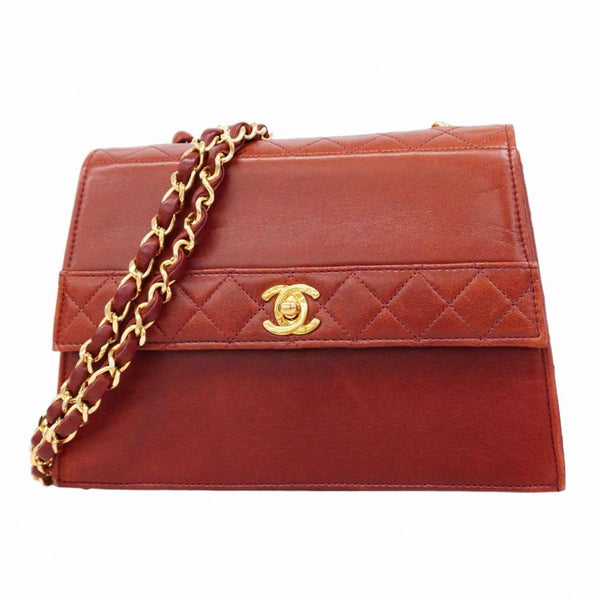 Chanel Matelasse Shoulder Bag with Chain Bag, Lambskin, Red, Women\'s, P1451983
