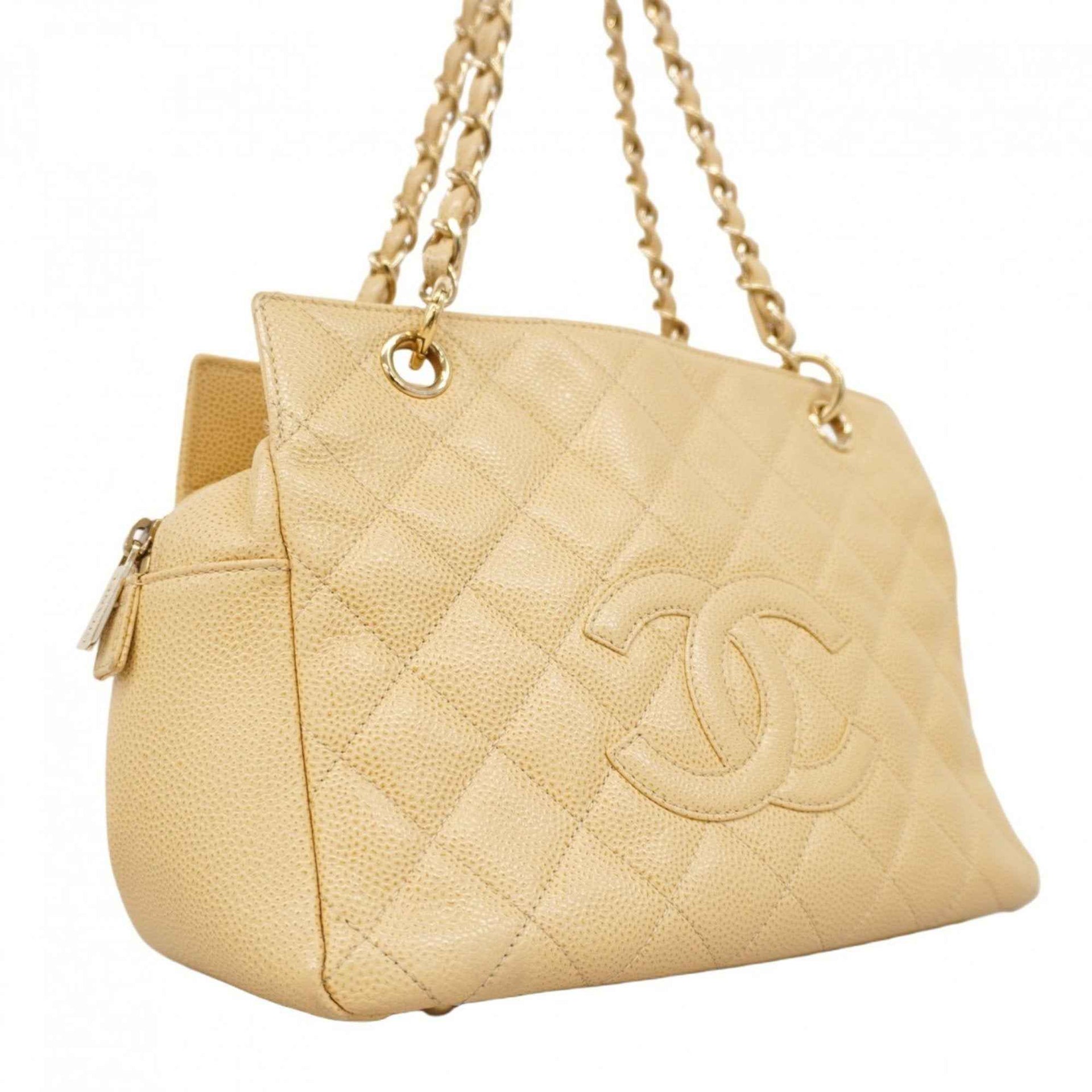 Chanel Matelasse Shoulder Bag with Chain, Caviar Skin, Beige, Champagne, Women\'s