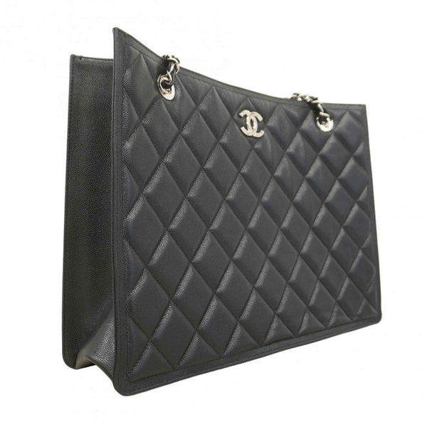 Chanel Matelasse Shoulder Bag with Chain, Caviar Skin, Black, Women\'s