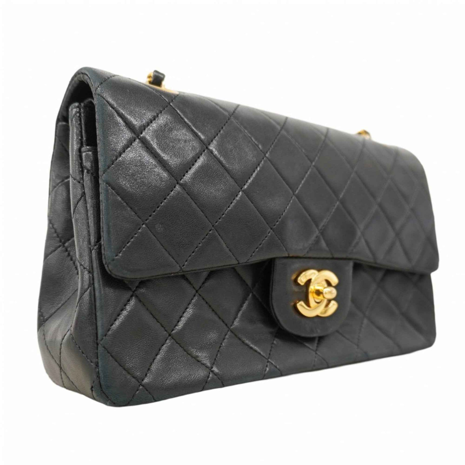 Chanel Matelasse Shoulder Bag with Double Flap and Chain, Lambskin, Black, Women\'s