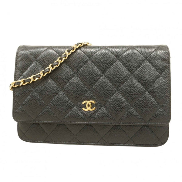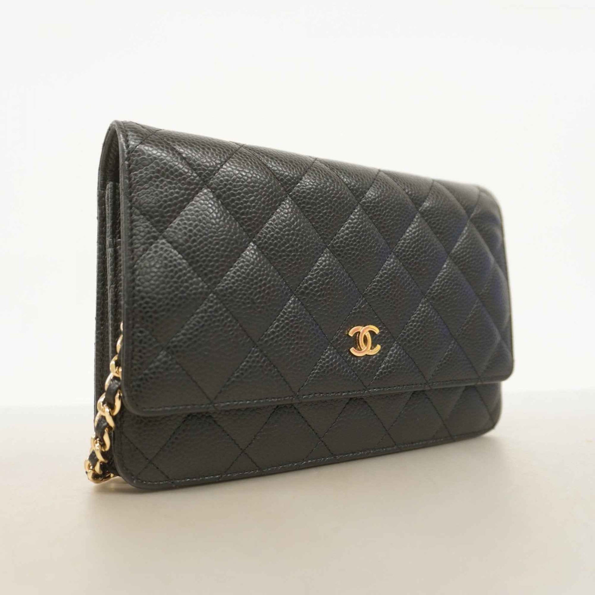Chanel Matelasse Shoulder Wallet with Chain Bag in Caviar Skin, Black, Women\'s