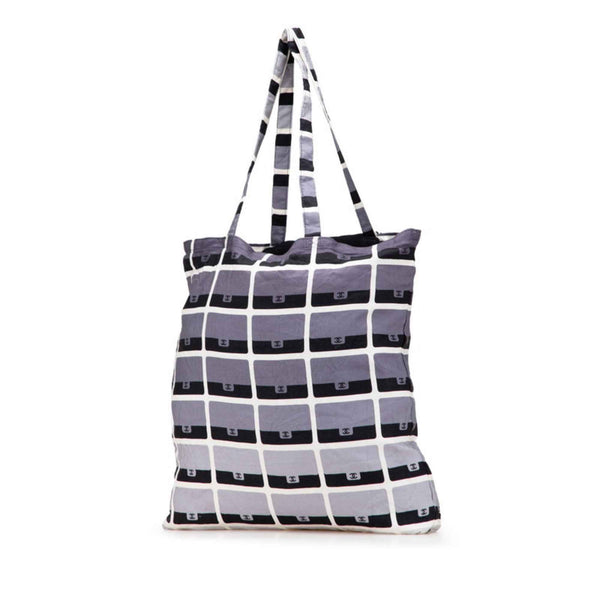 CHANEL Matelasse Tote Bag, Eco Chain Shoulder 2-Way, Black, White, Gray, Cotton, Women\'s