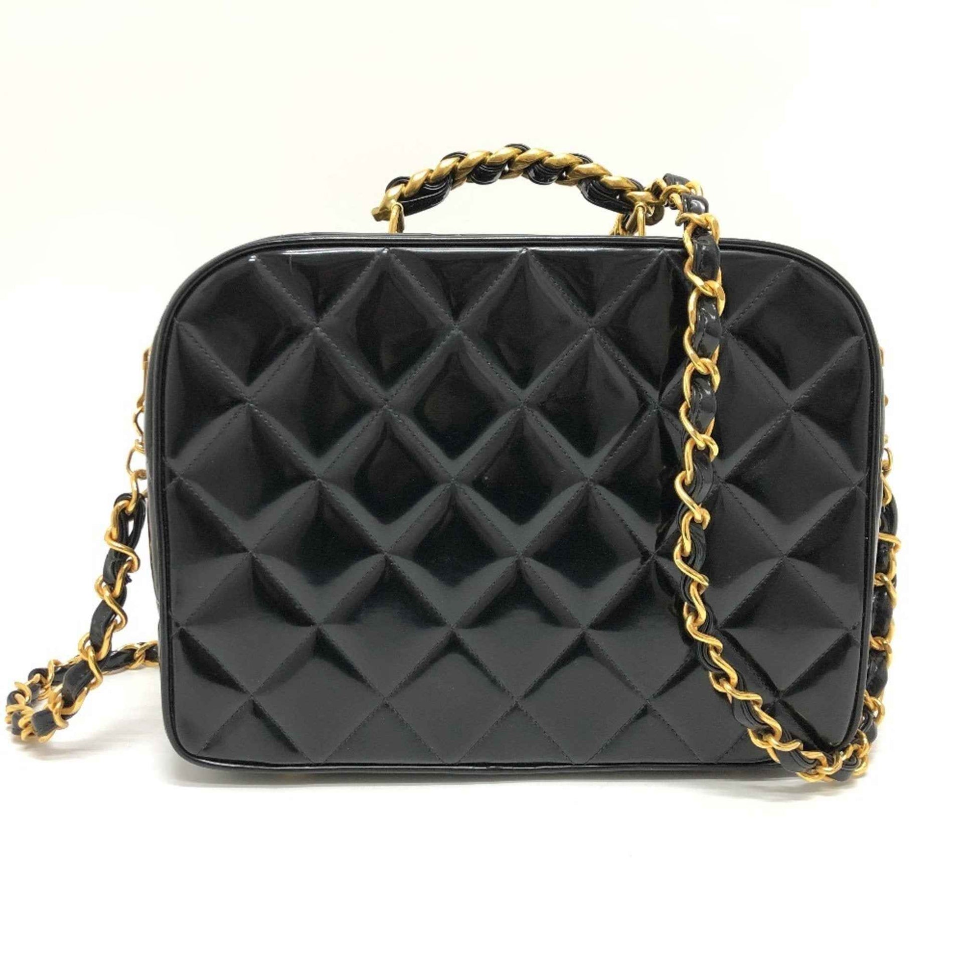 CHANEL Matelasse Vanity 2-Way Handbag in Enamel, Black, Women\'s