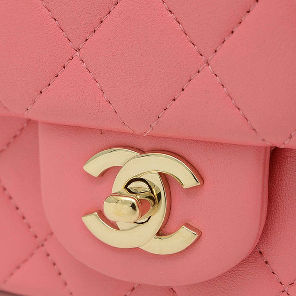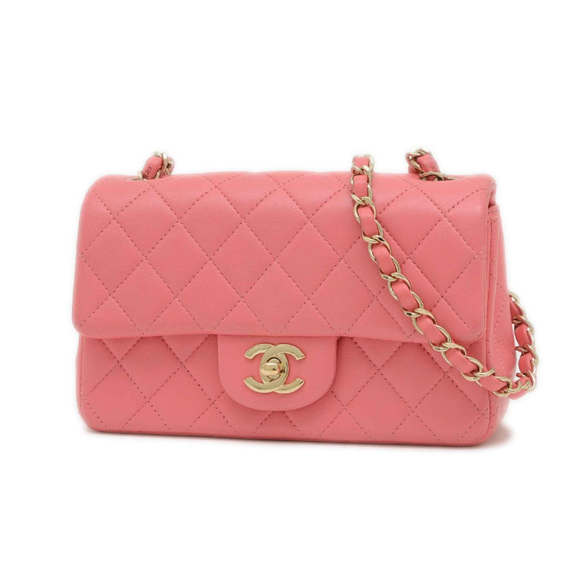 Chanel Mini Matelasse 20 Chain Shoulder Bag in Pink Lambskin with Gold Hardware (A69900)