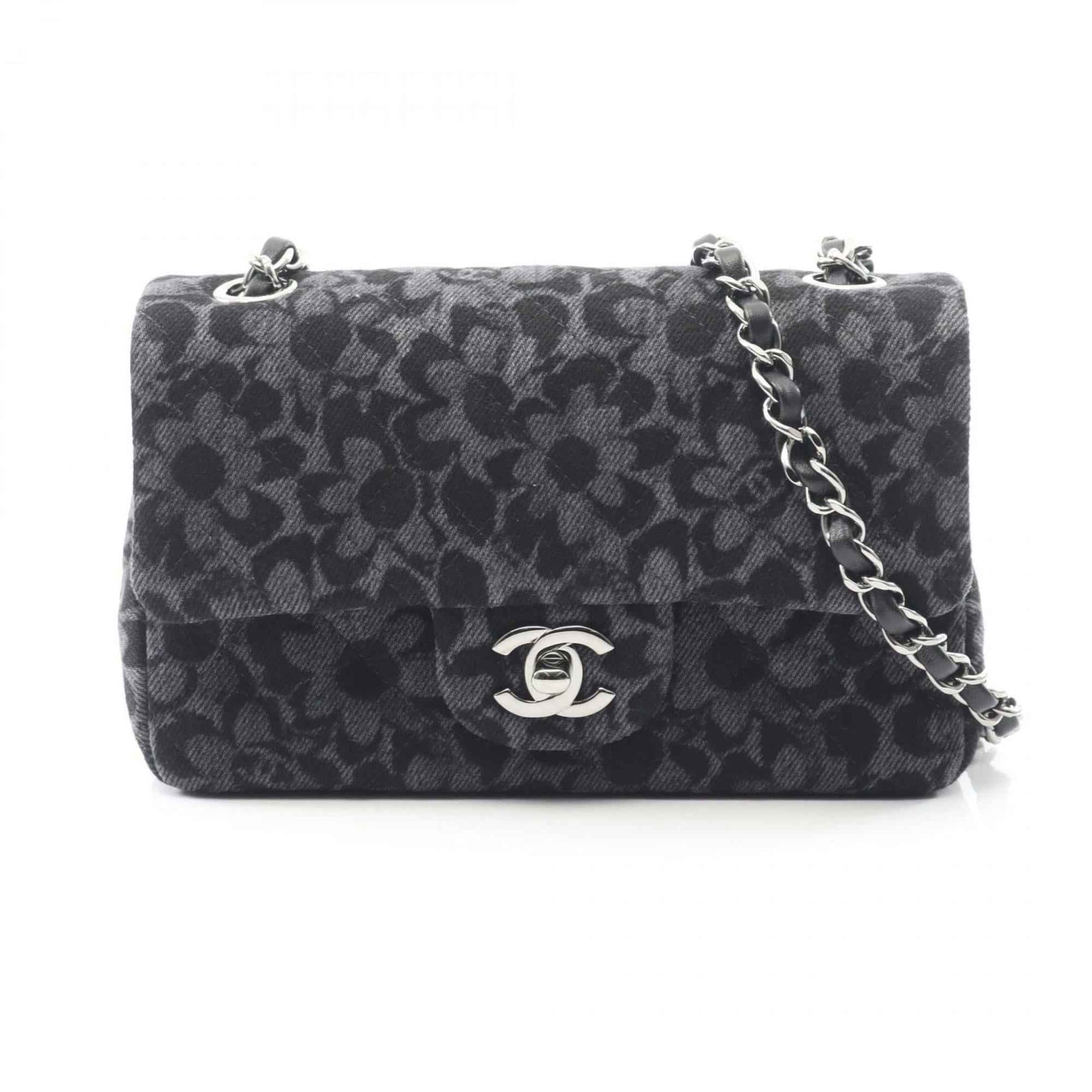 CHANEL Mini Matelasse 20 Shoulder Bag, Denim, Women\'s, Gray/Black