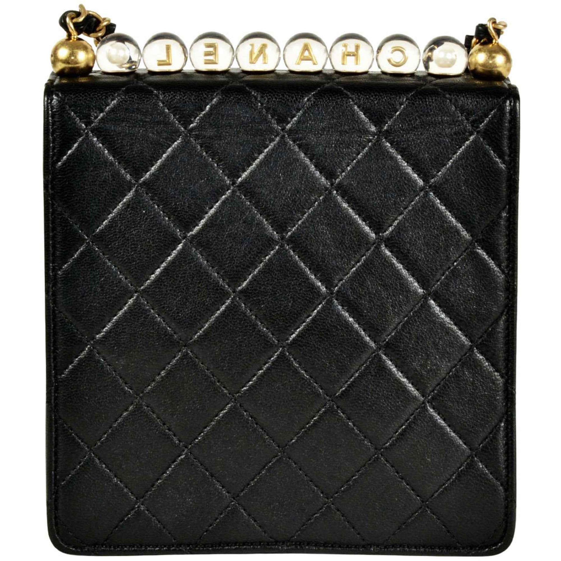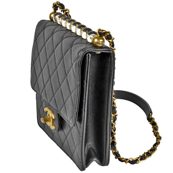 CHANEL Mini Matelasse Chain Shoulder Bag Leather Black