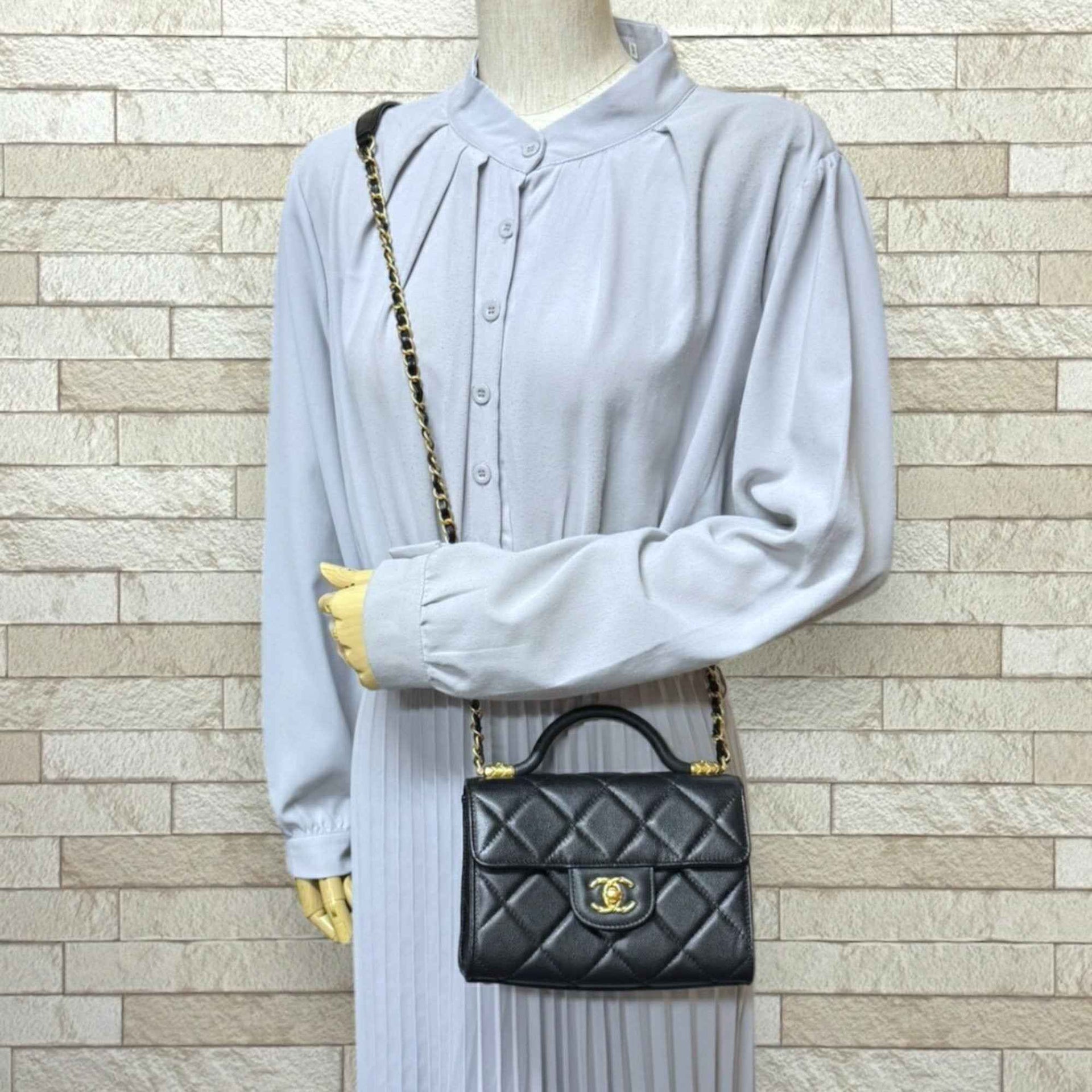Chanel Mini Matelasse Shoulder Bag, Caviar Leather, Black, Women\'s, AS4956, with Chain