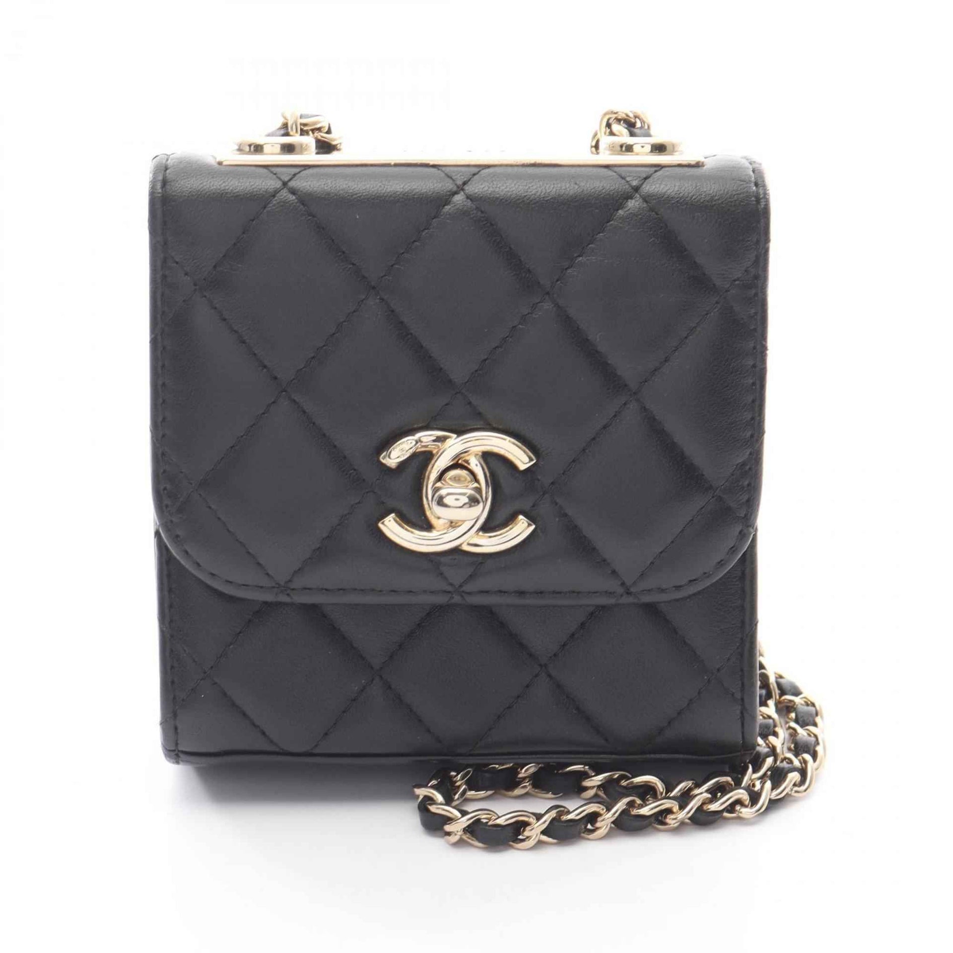 CHANEL Mini Matelasse Shoulder Bag, Lambskin Leather, Women\'s, Black