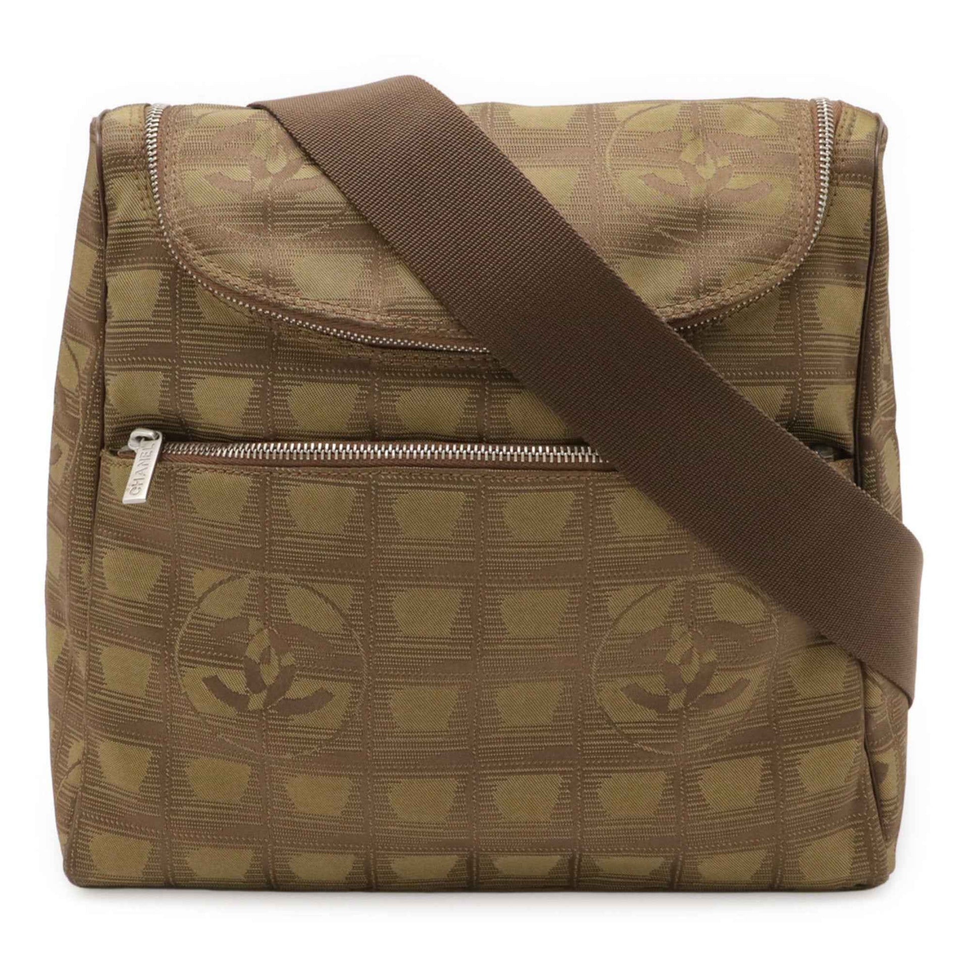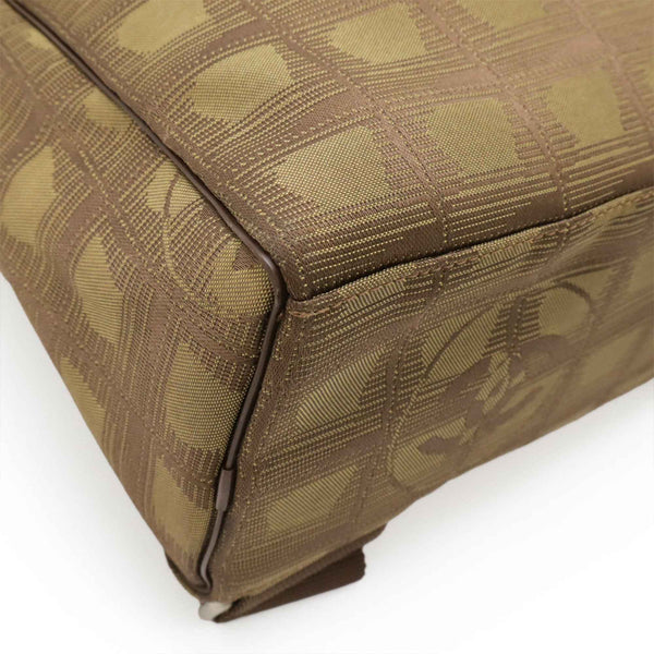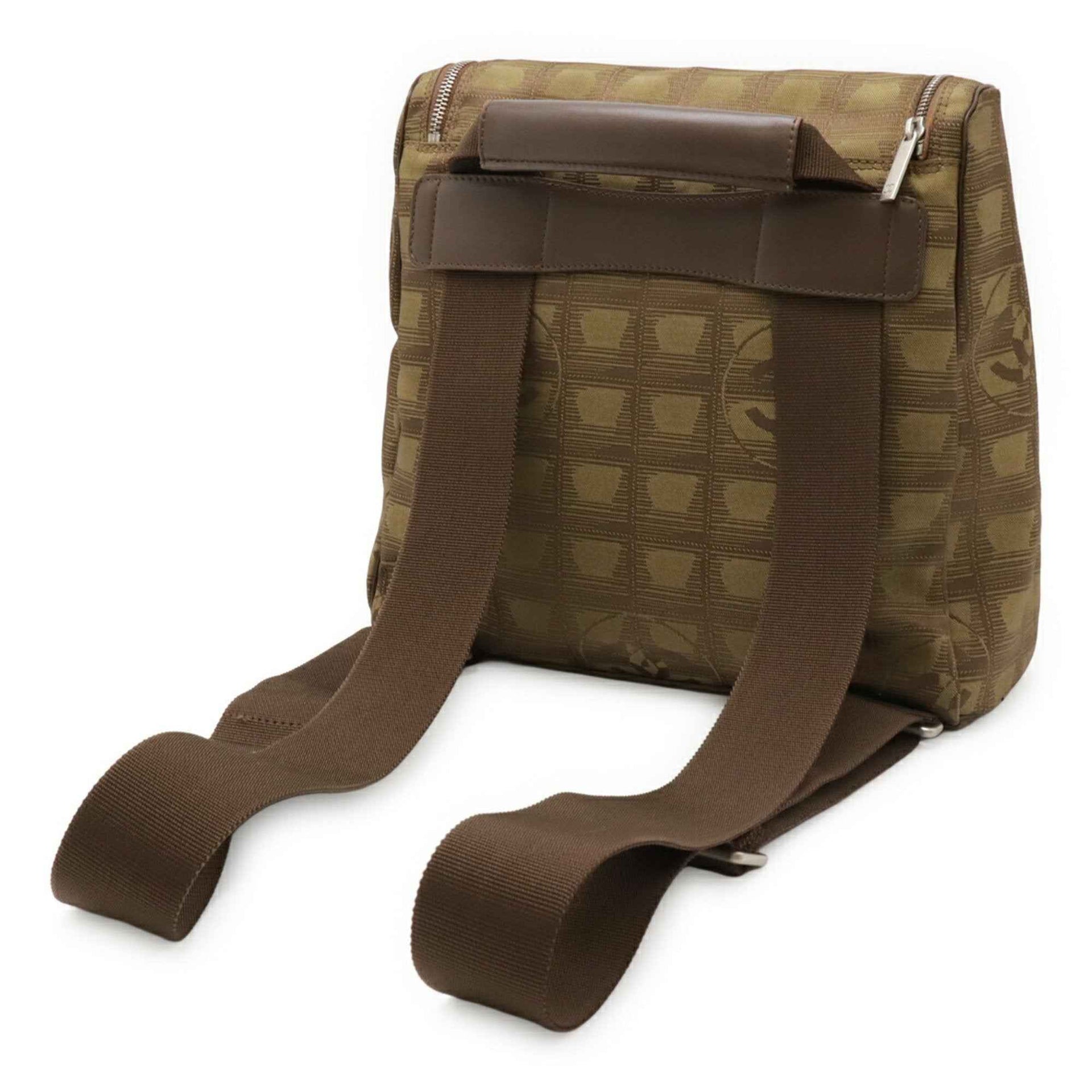 CHANEL New Travel Line Backpack Shoulder Bag Nylon Jacquard Leather Khaki A15958