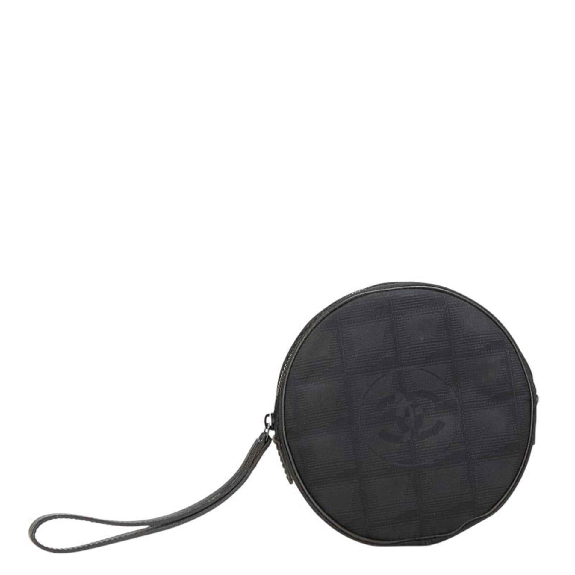 Chanel New Travel Line Coco Mark Round Pouch A17682 Black Nylon Leather Women\'s CHANEL