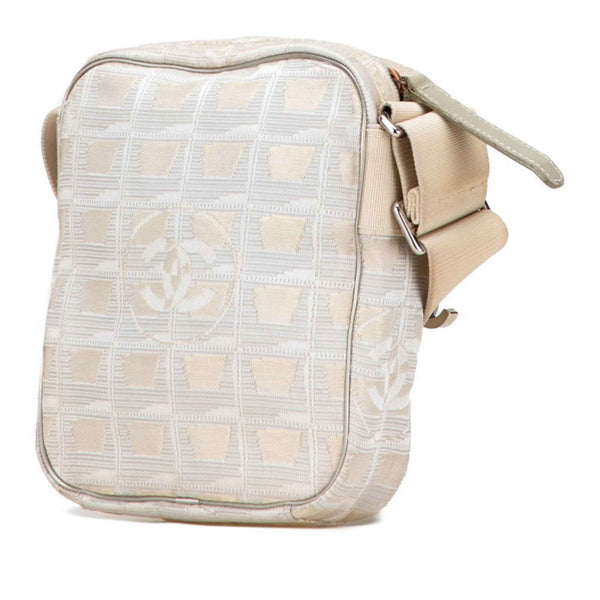 CHANEL New Travel Line Crossbody Shoulder Bag Pochette Ivory Canvas Leather Women\'s