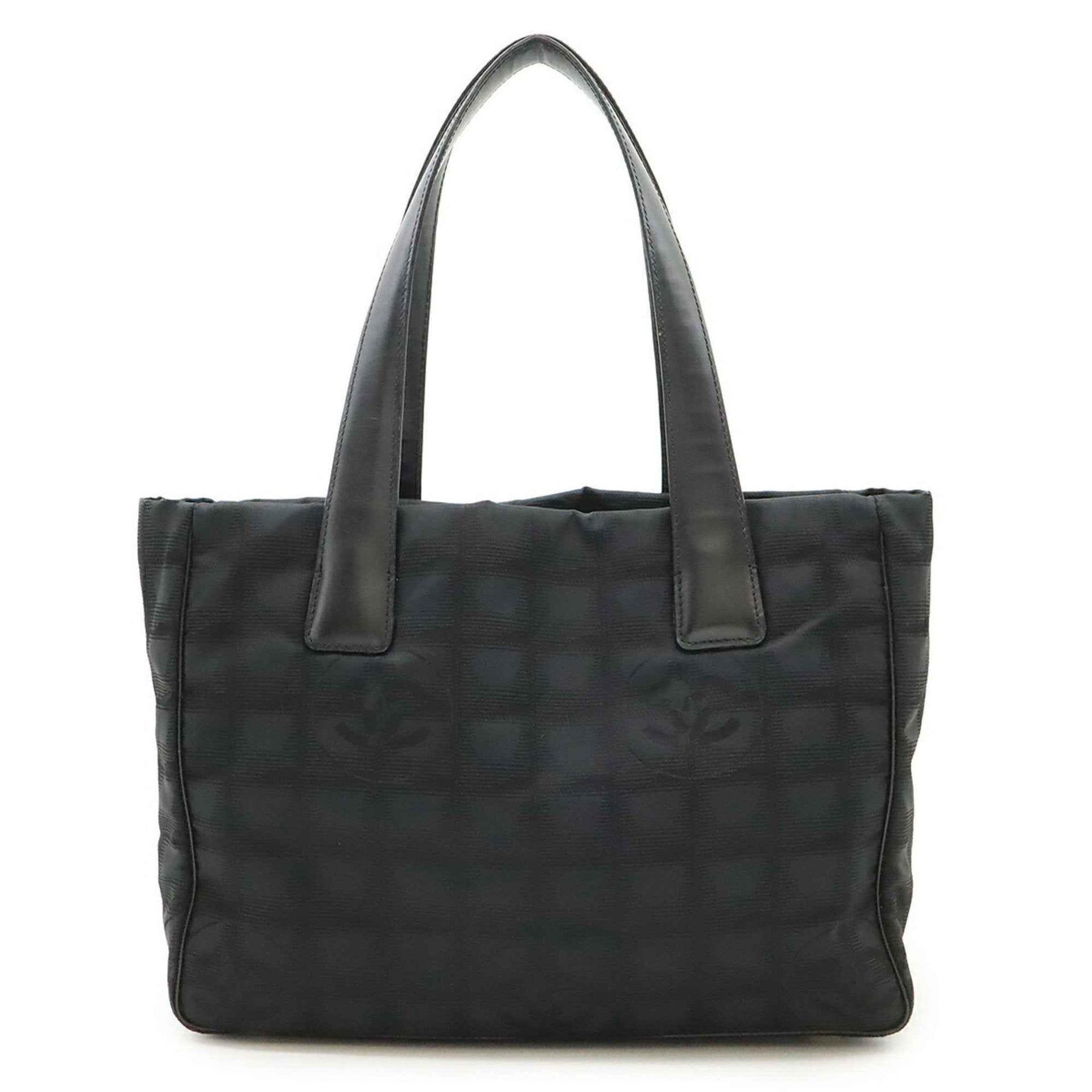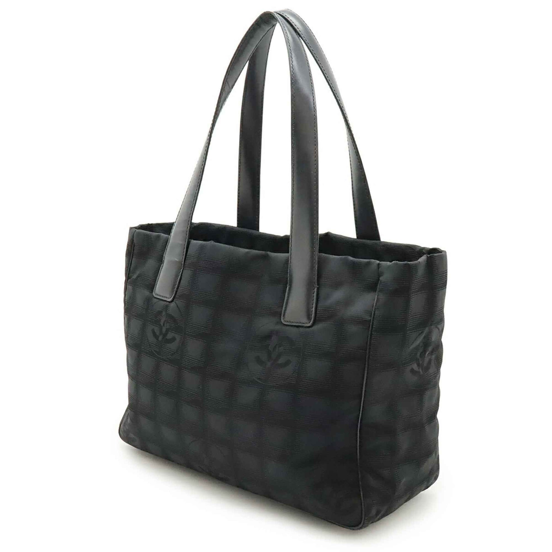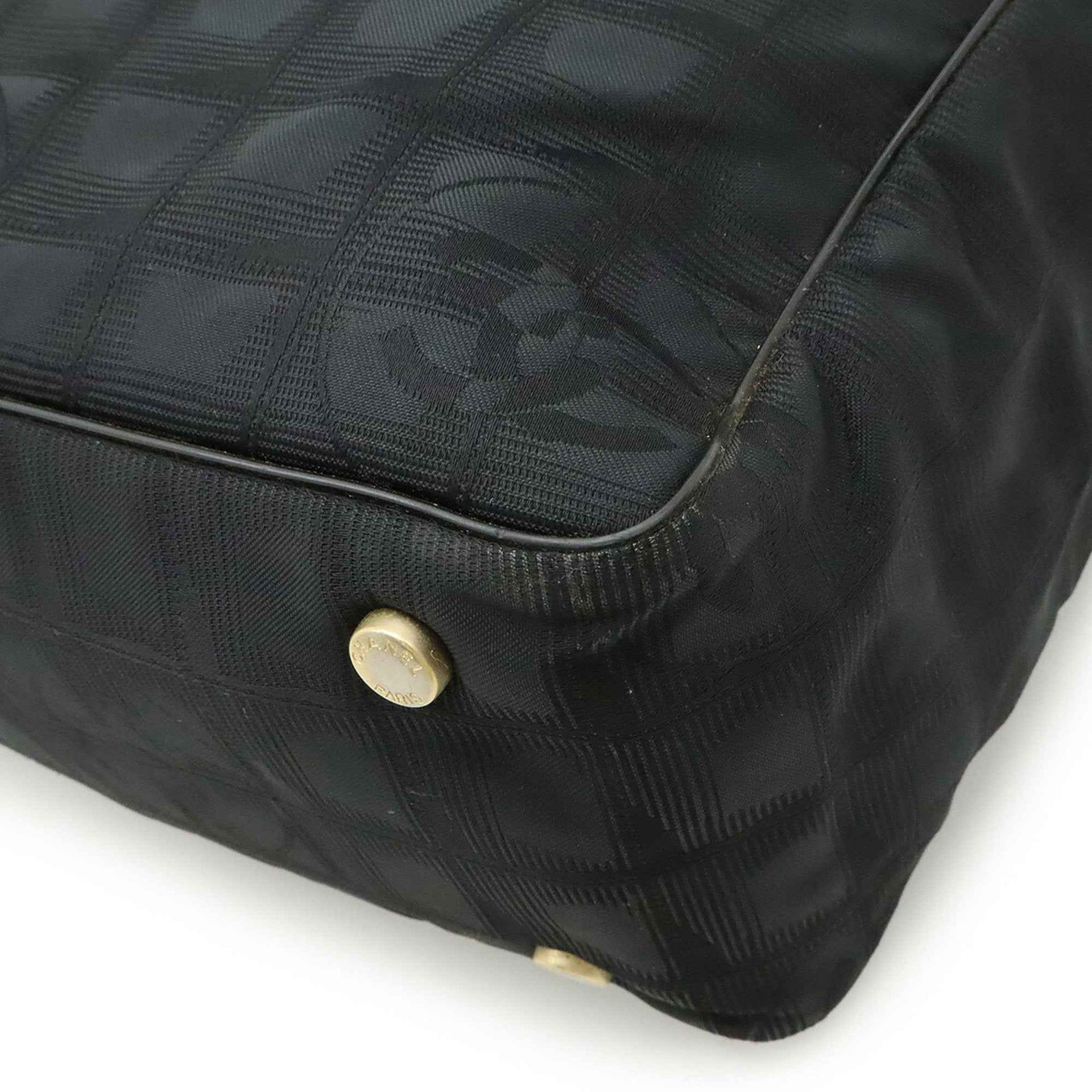 CHANEL New Travel Line Tote PM Shoulder Bag in Nylon Jacquard and Black Leather (A20457)