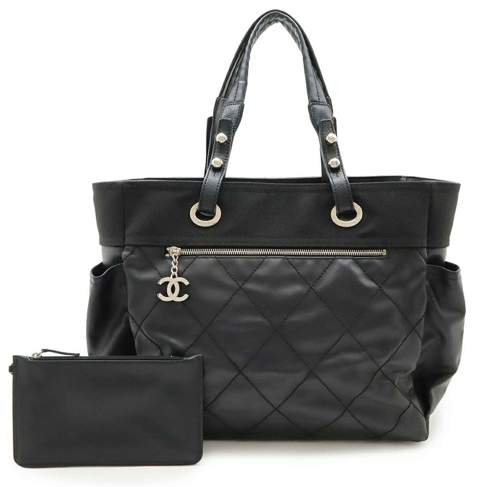 CHANEL Paris Biarritz Tote GM Bag Shoulder Coated Canvas Black A34210