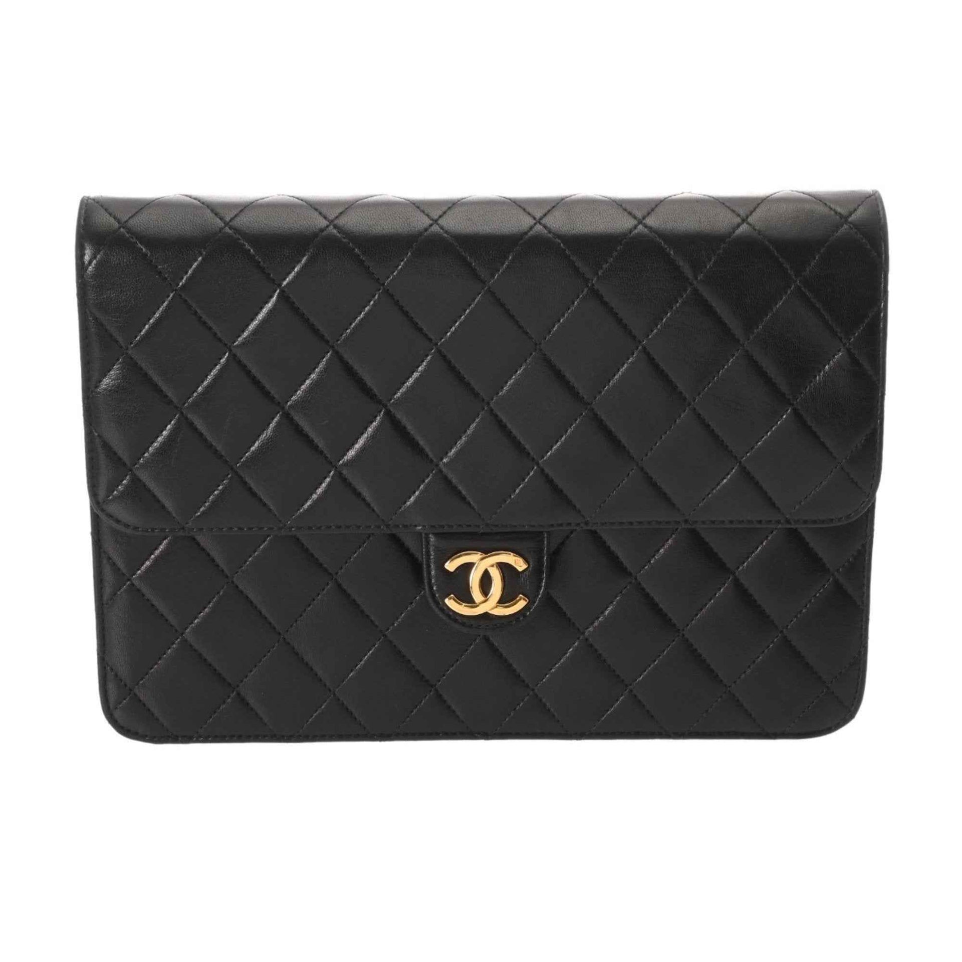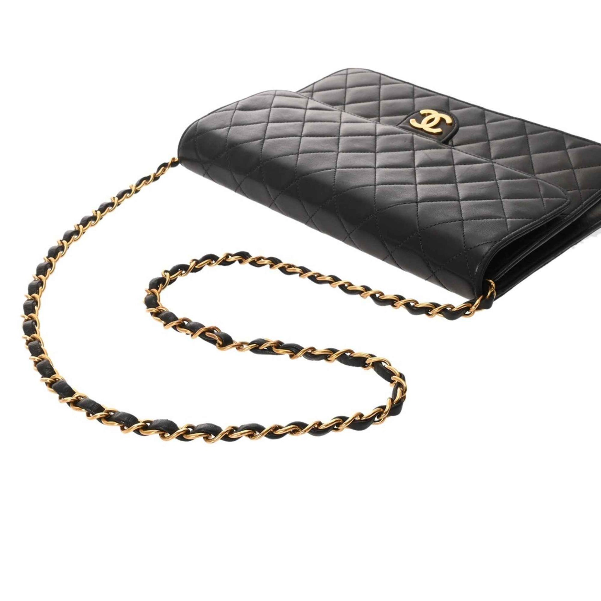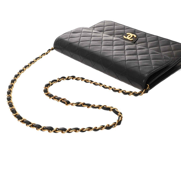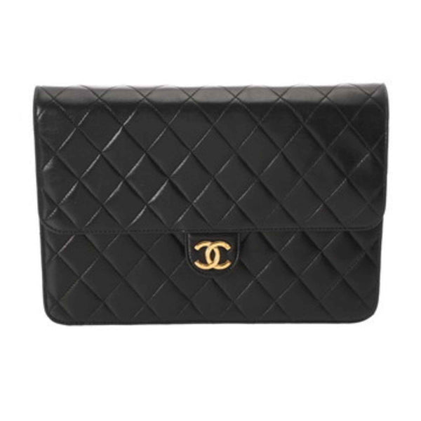 CHANEL Push Lock 25cm Black Women\'s Lambskin Shoulder Bag