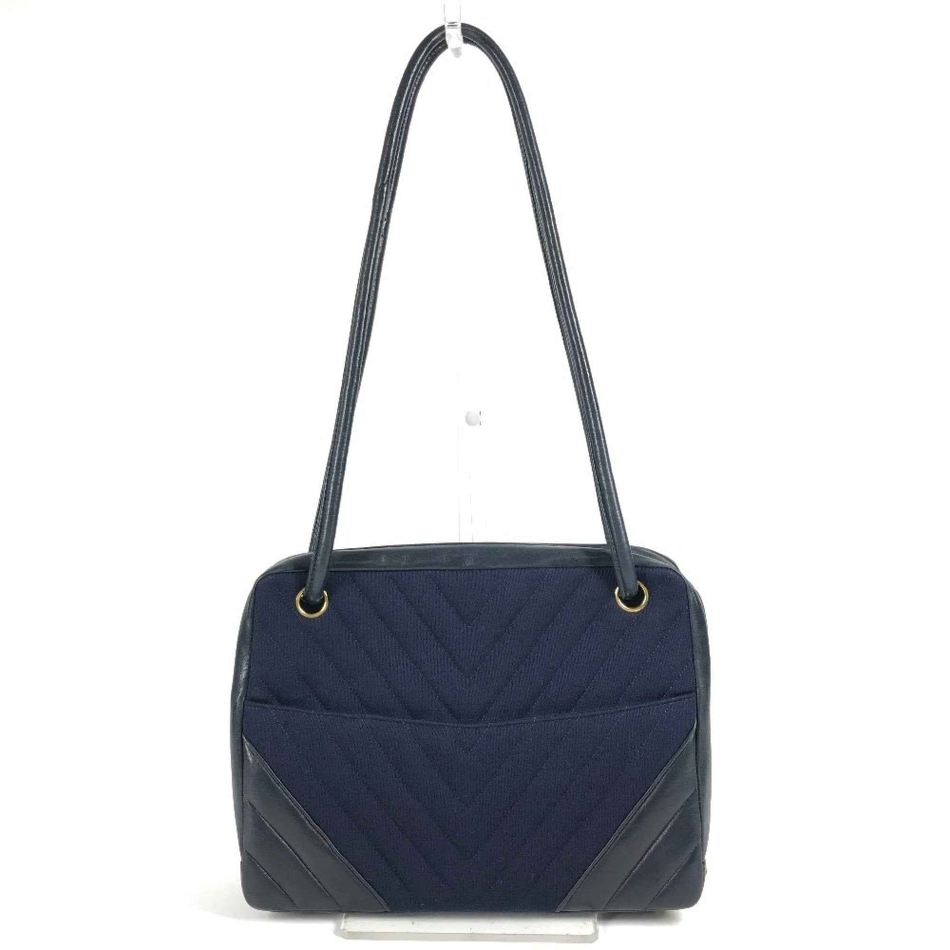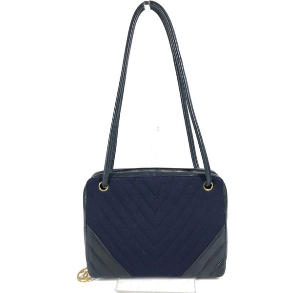 CHANEL Quilted Shoulder Bag in Jersey/Leather, Navy