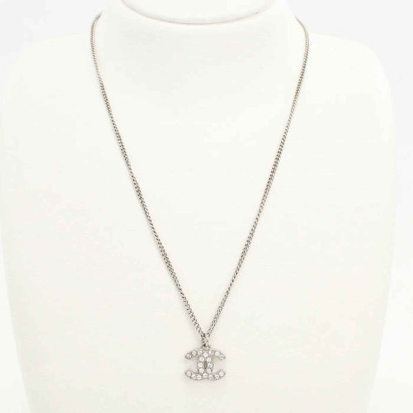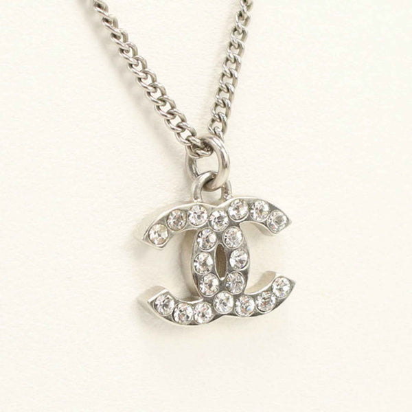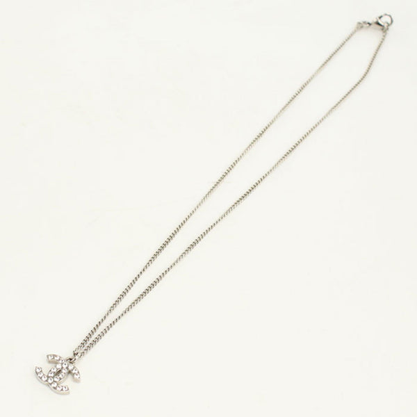 CHANEL Rhinestone Coco Mark Necklace, Silver, Women\'s
