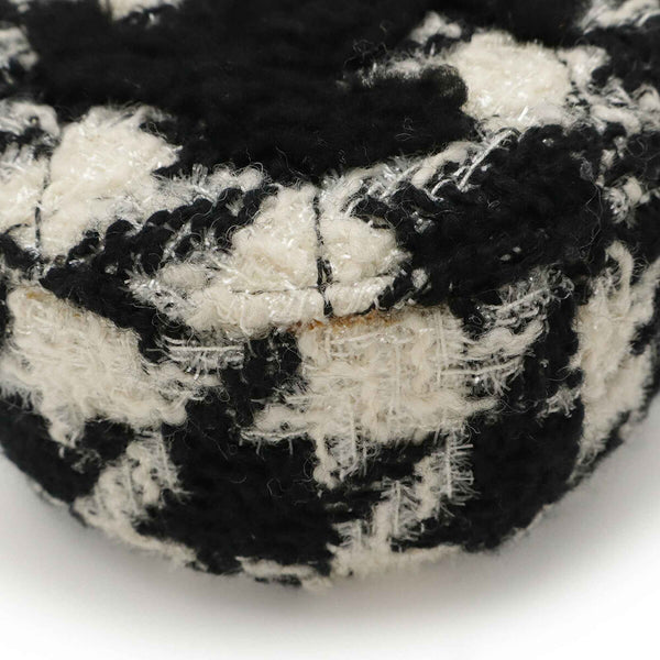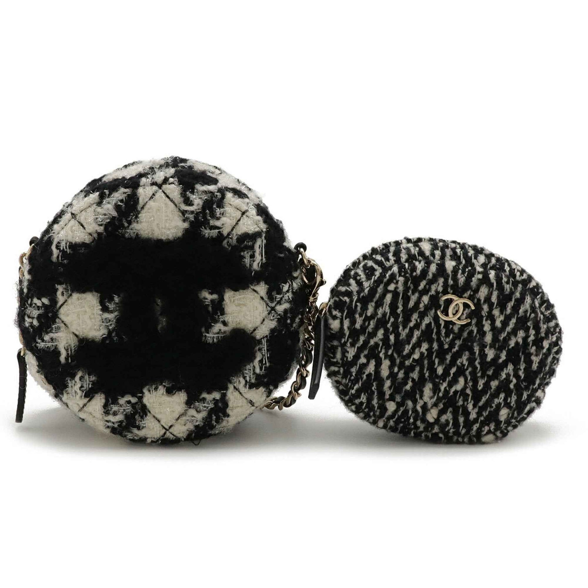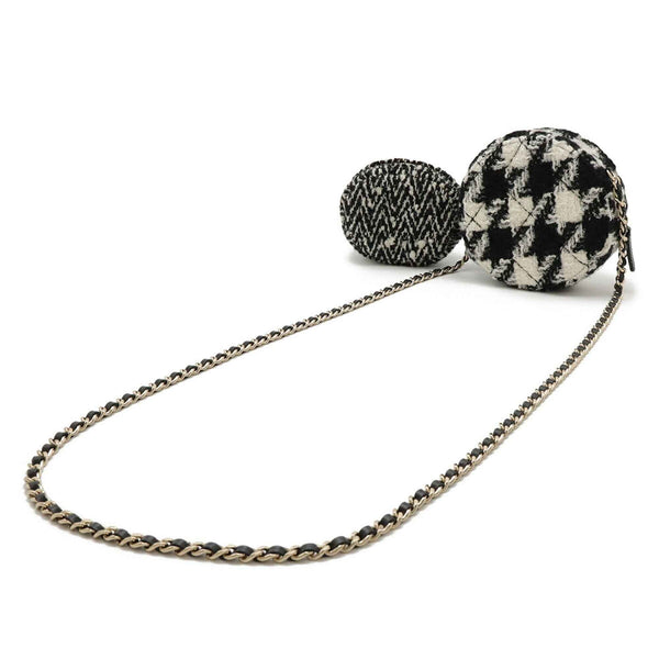 CHANEL Round Chain Shoulder Pochette in Houndstooth Tweed with Boa, Ivory and Black, AP0986