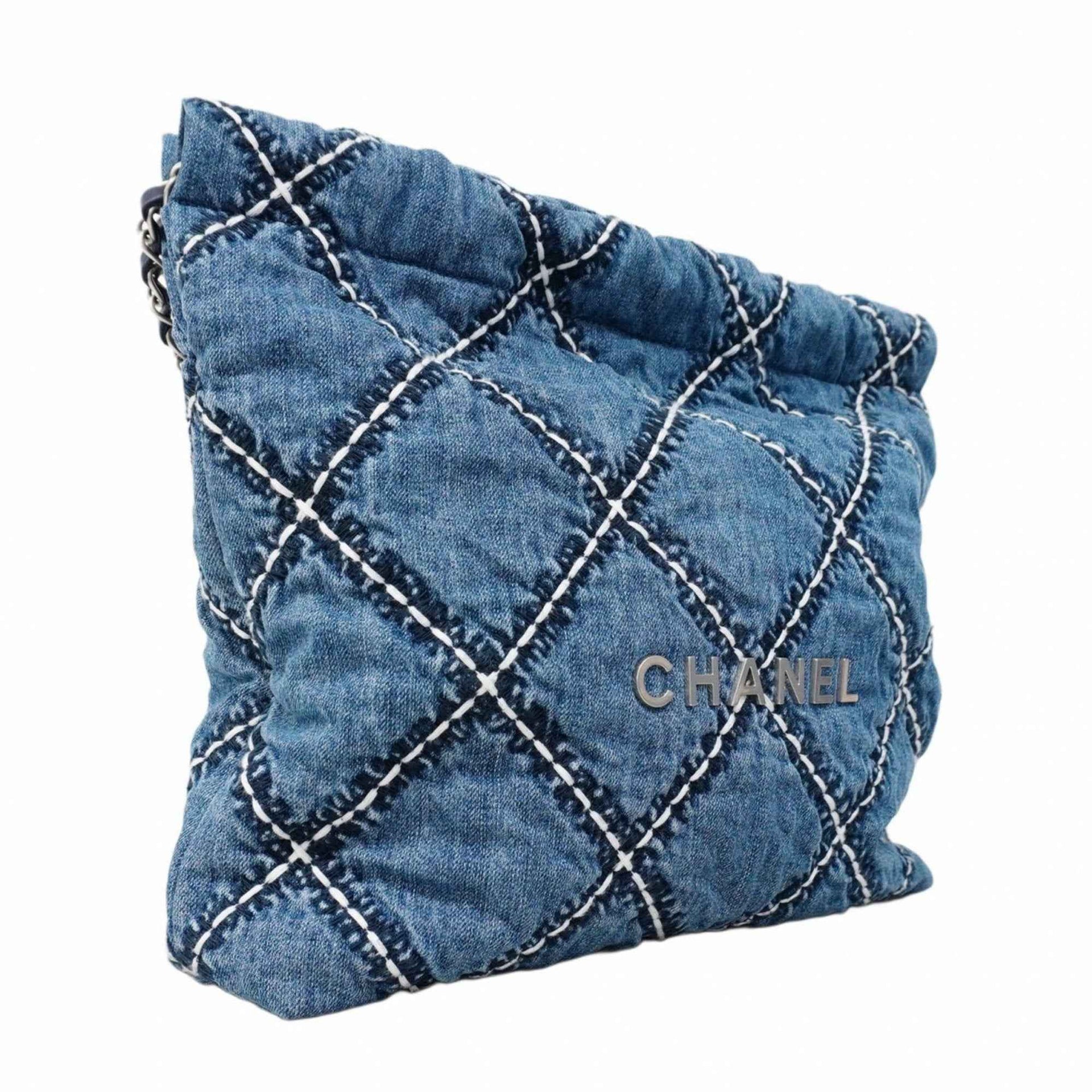 Chanel Shoulder Bag Chain 22 Denim Blue Women\'s
