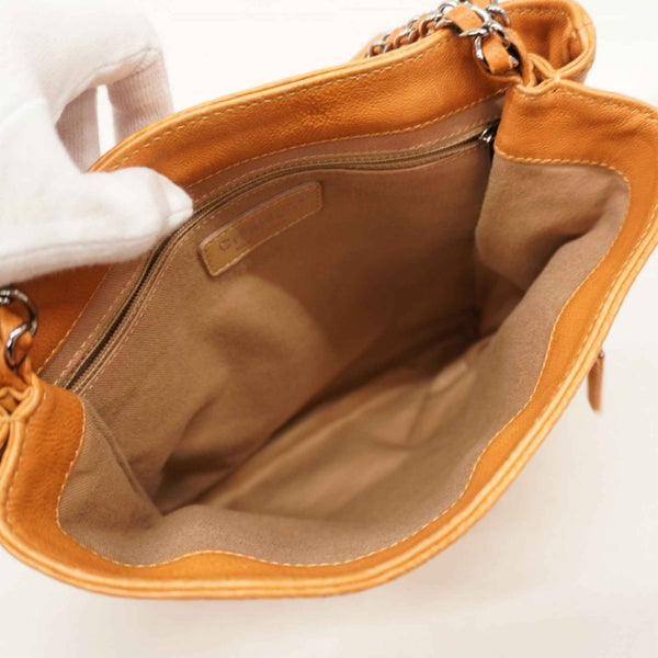 Chanel Shoulder Bag Chain Leather Light Brown Women\'s