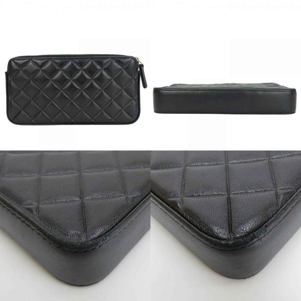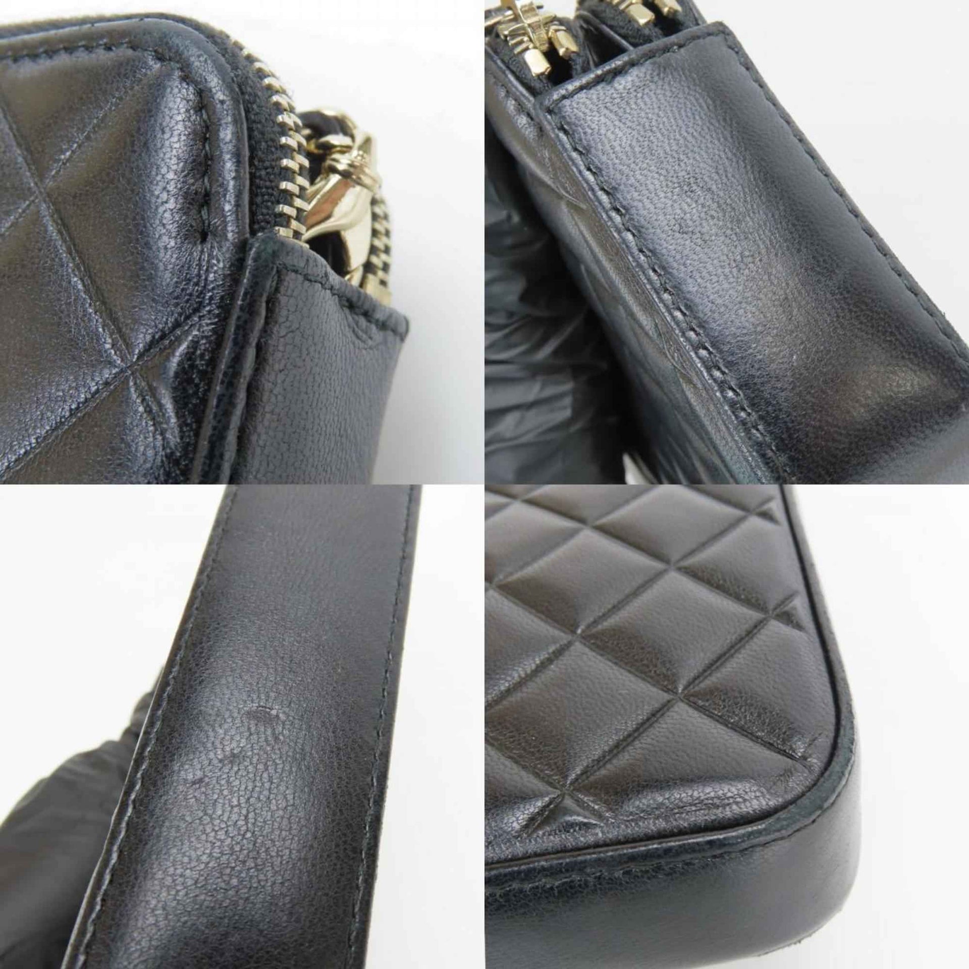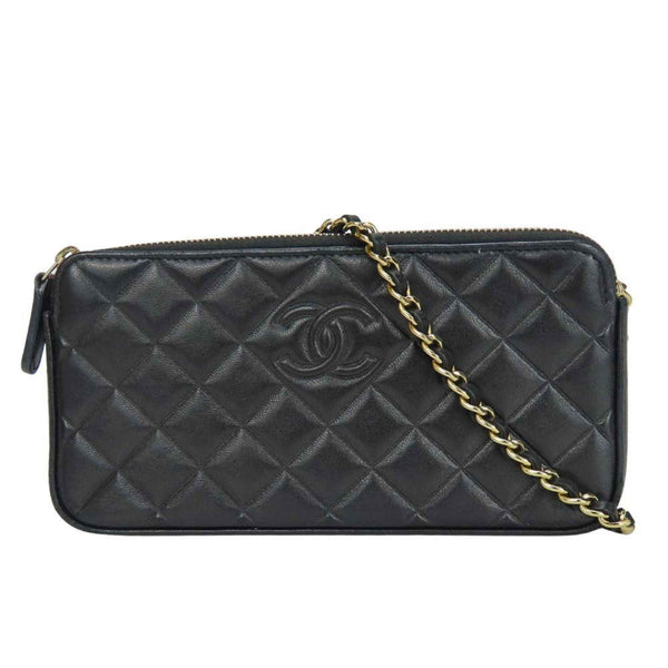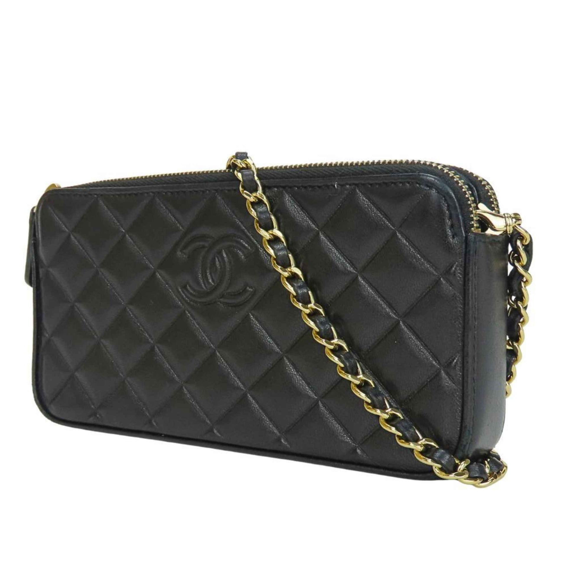 CHANEL Shoulder Bag Chain Wallet Black Lambskin Pochette Matelasse Stitch 24 Series Women\'s