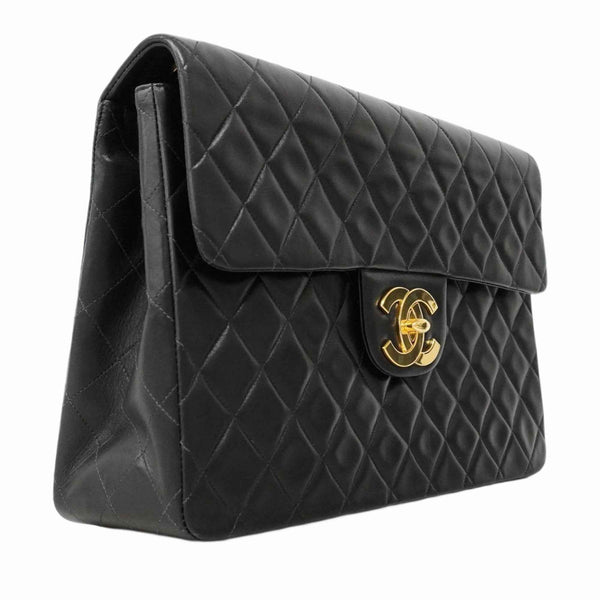 Chanel Shoulder Bag, Large Matelasse, Double Chain, Lambskin, Black, Women\'s