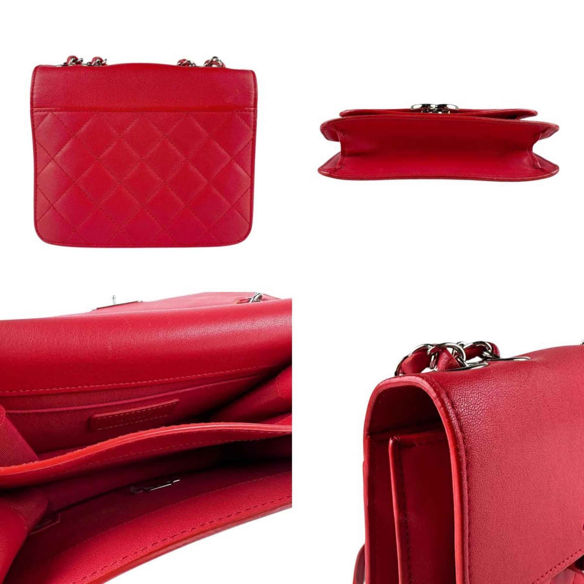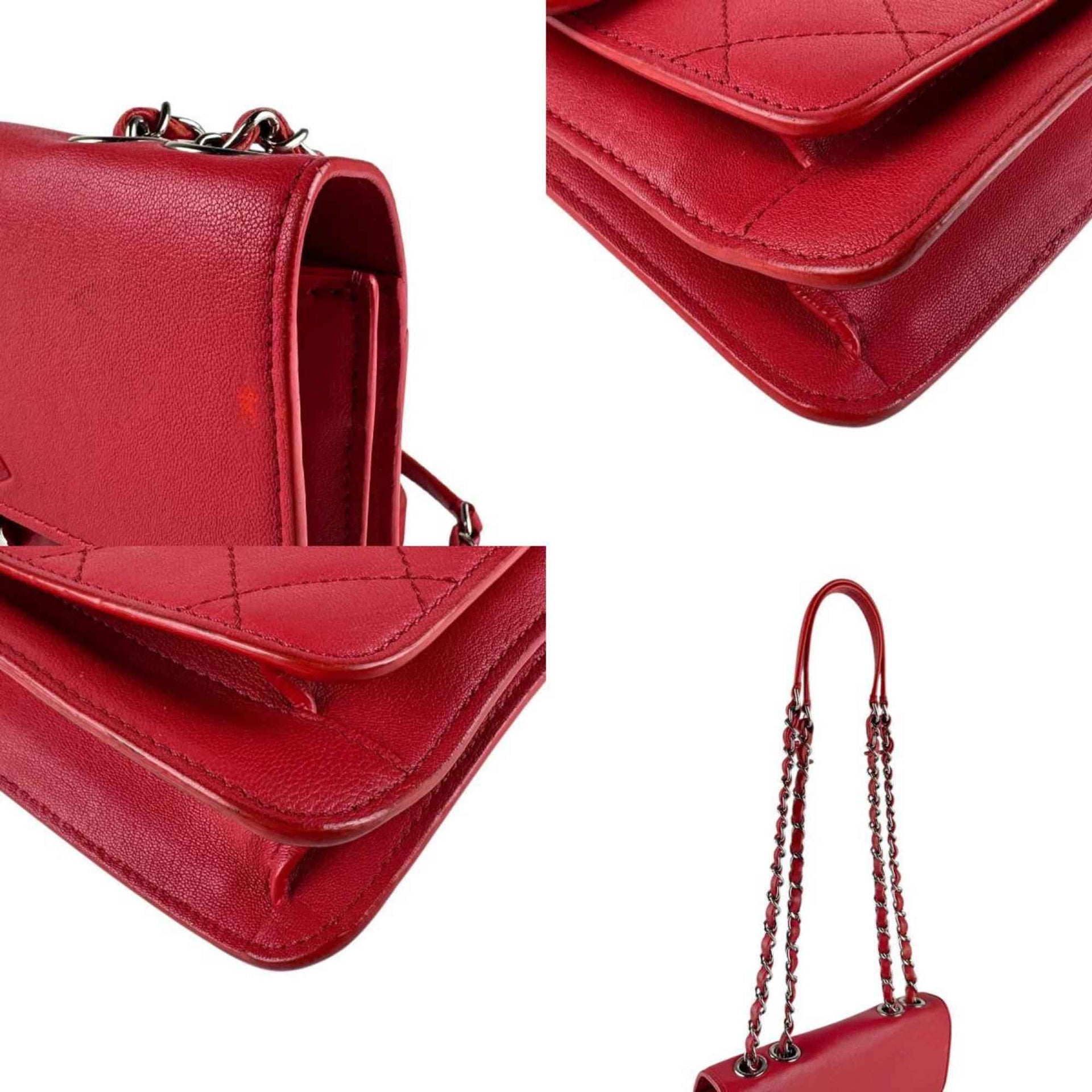 CHANEL Shoulder Bag Leather Metal Red Silver Women\'s z7430