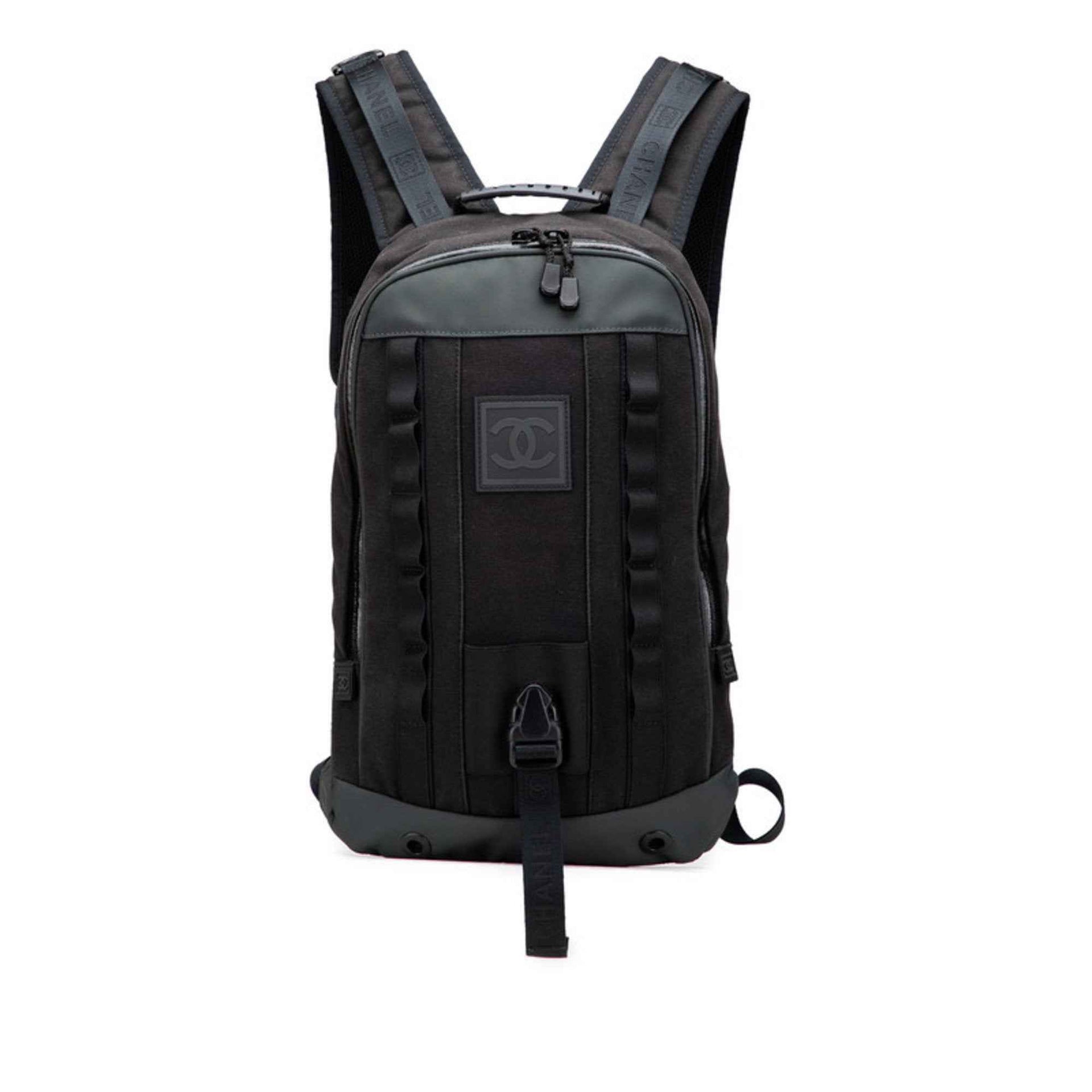 Chanel Sport Line Coco Mark Backpack, Khaki Green, Black Canvas and Leather, Women\'s, CHANEL