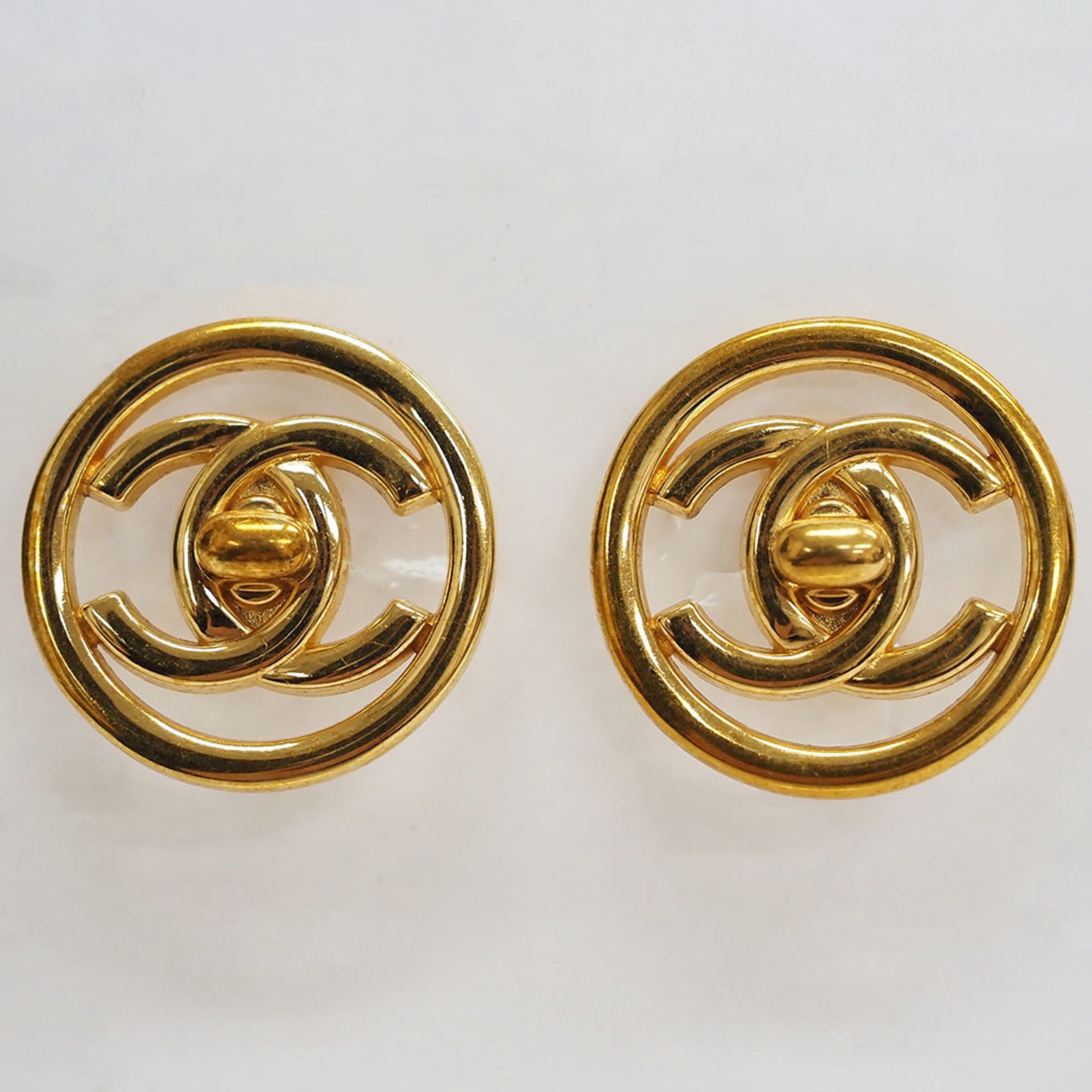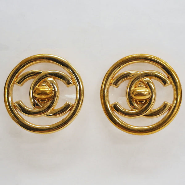 Chanel Turnlock Coco Round Earrings Gold Circle Women\'s CHANEL