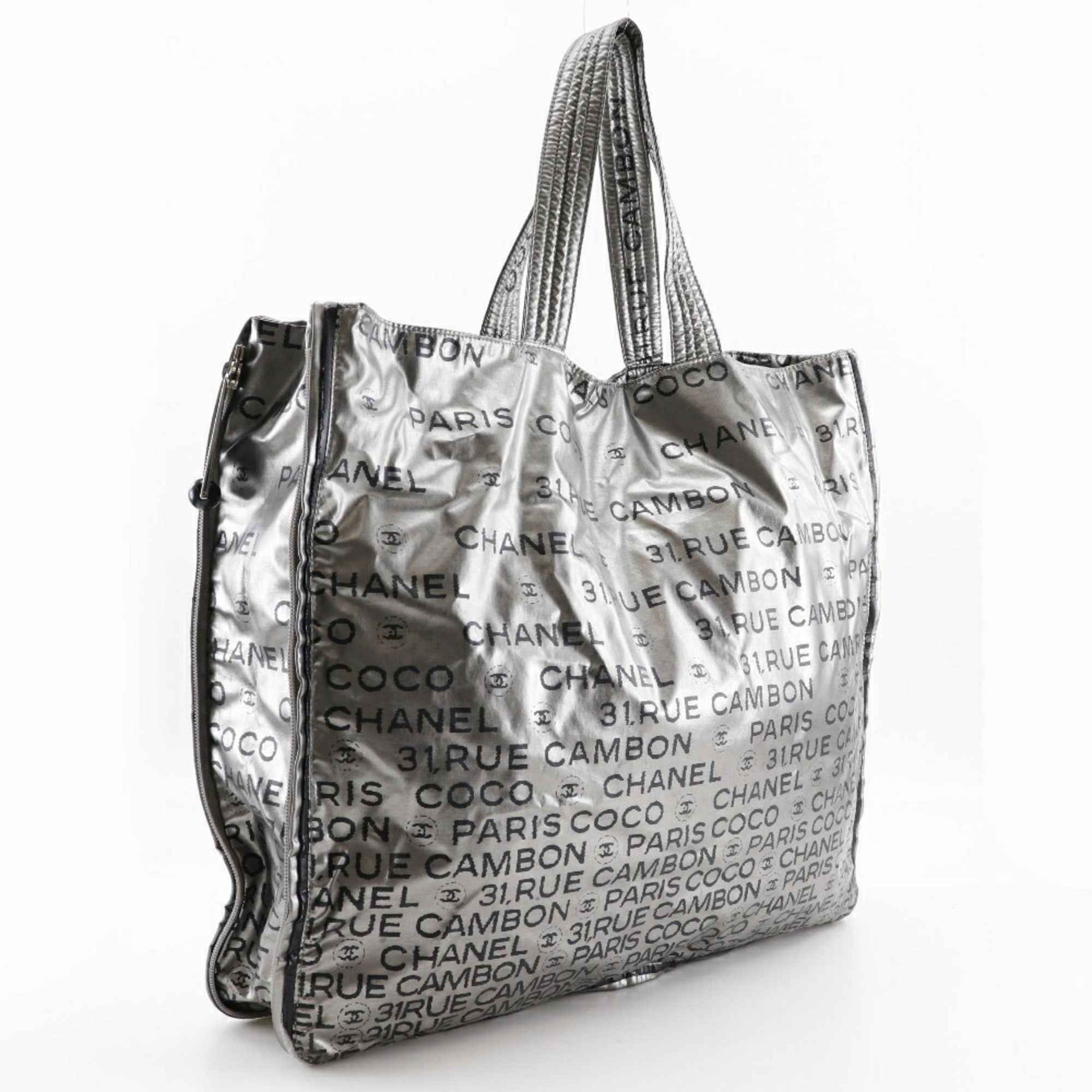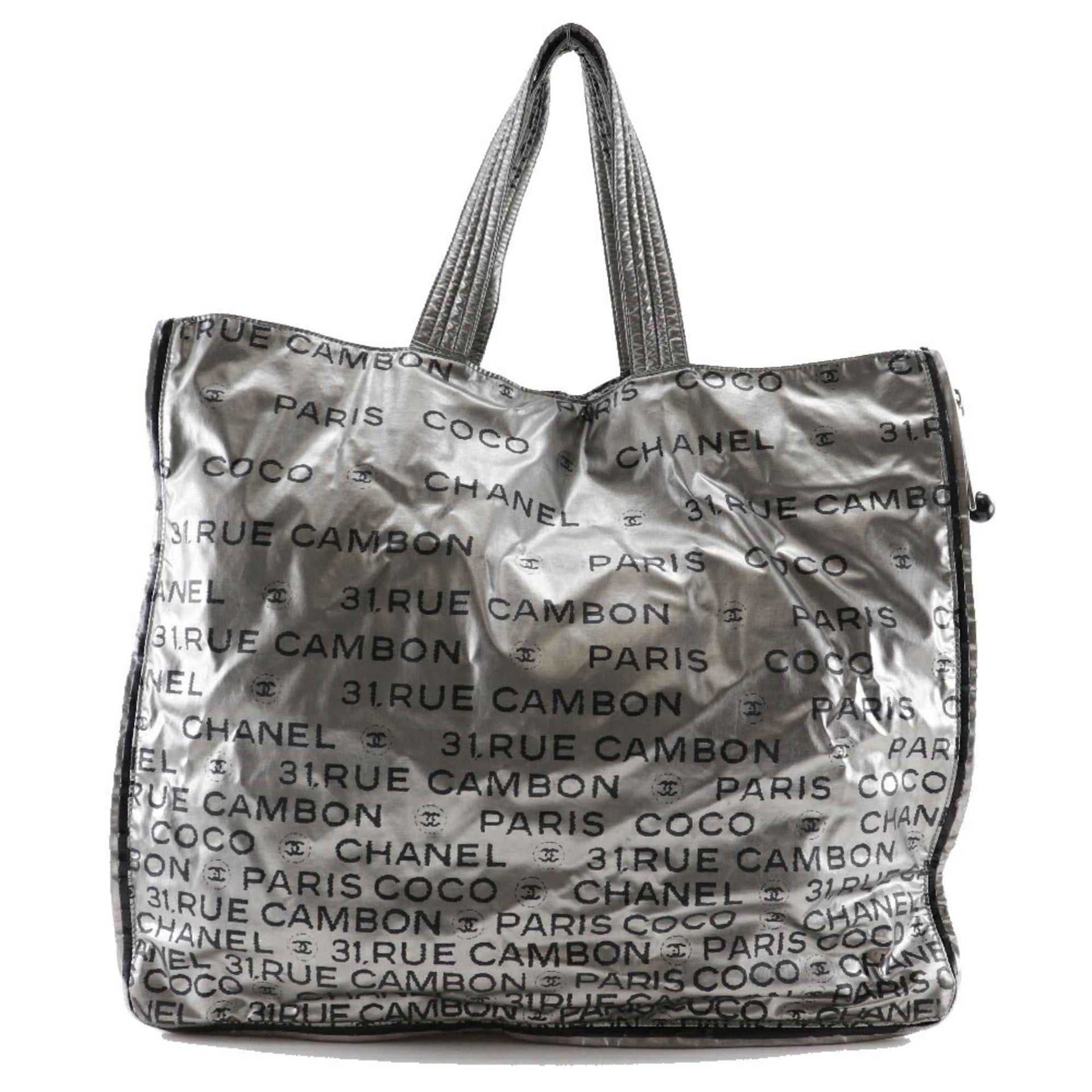 Chanel Unlimited Tote Bag Logo Here Mark A46113 Nylon Silver Ladies