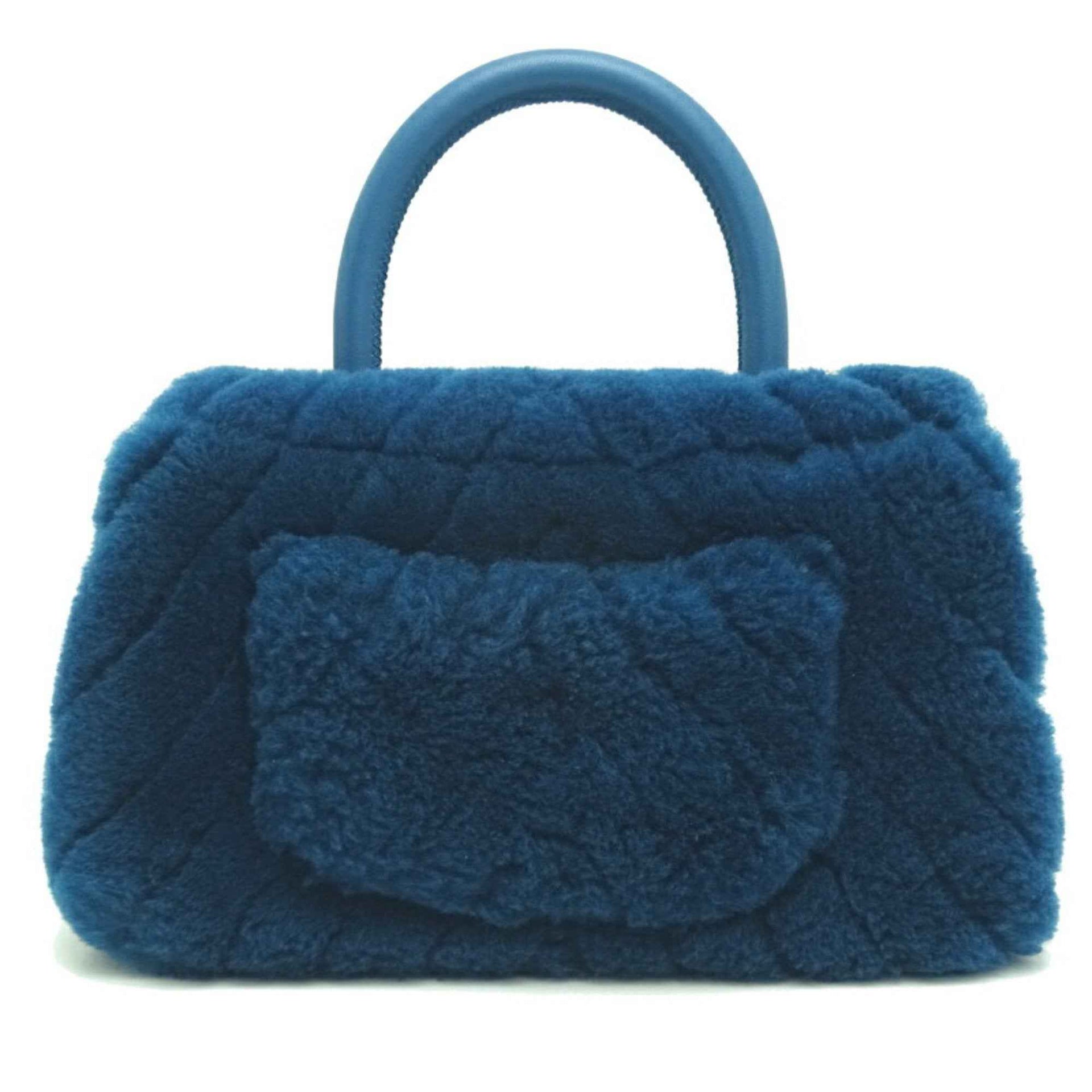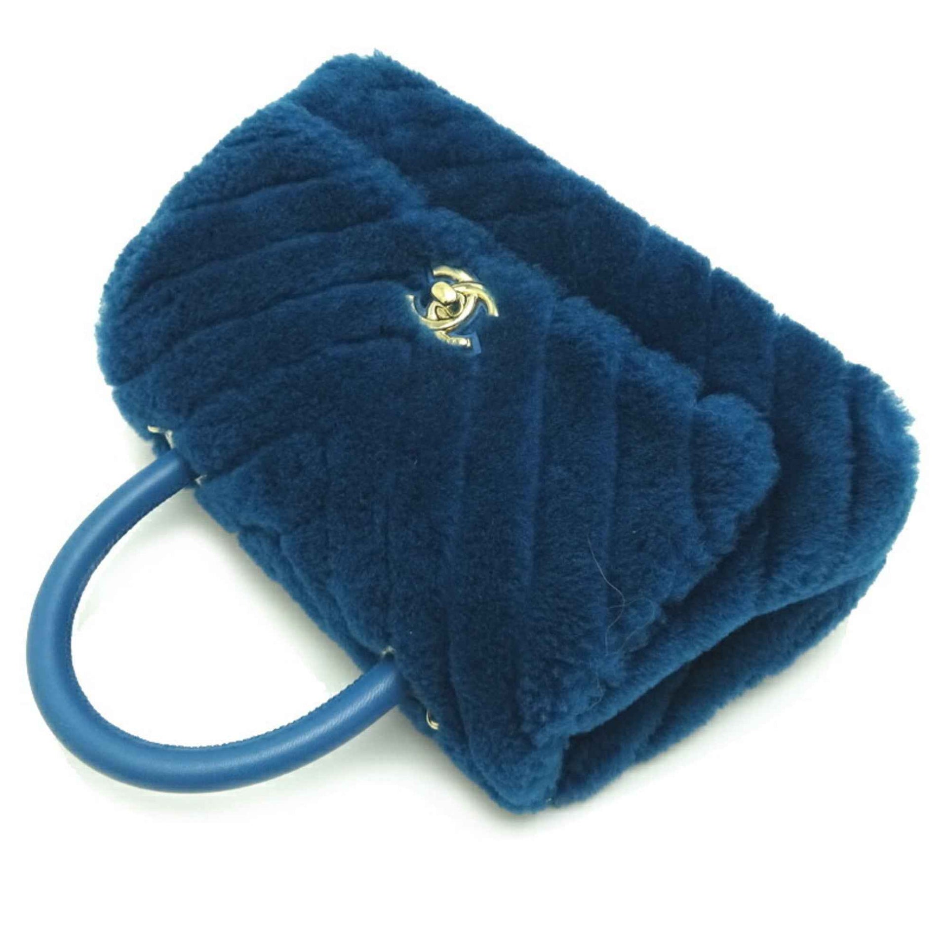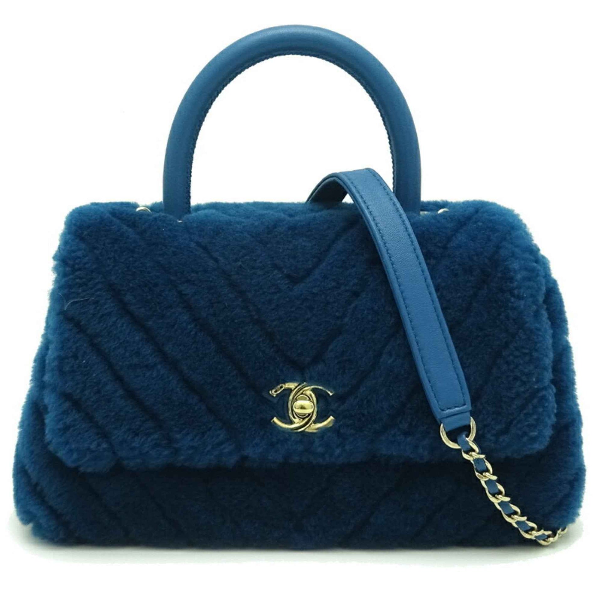 Chanel V-Stitch Coco Handle (XS) Chain Shoulder Bag, Women\'s, Mouton, Blue