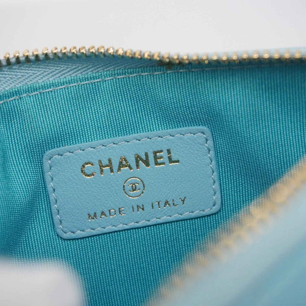 Chanel wallet/coin case, Matelasse lambskin, sky blue, champagne, for women