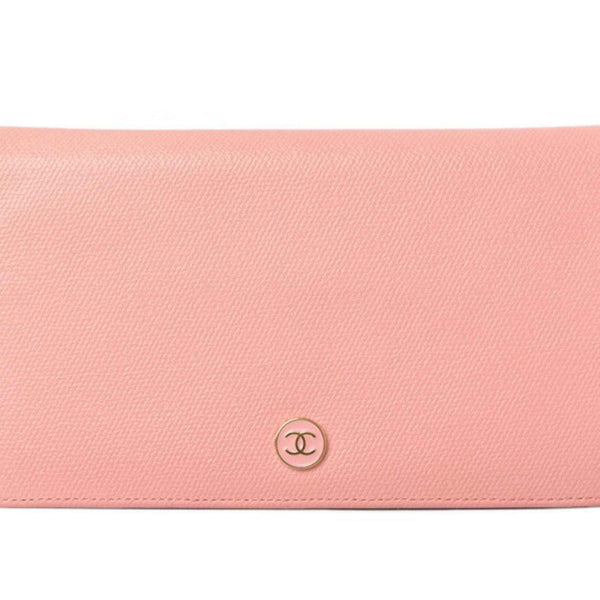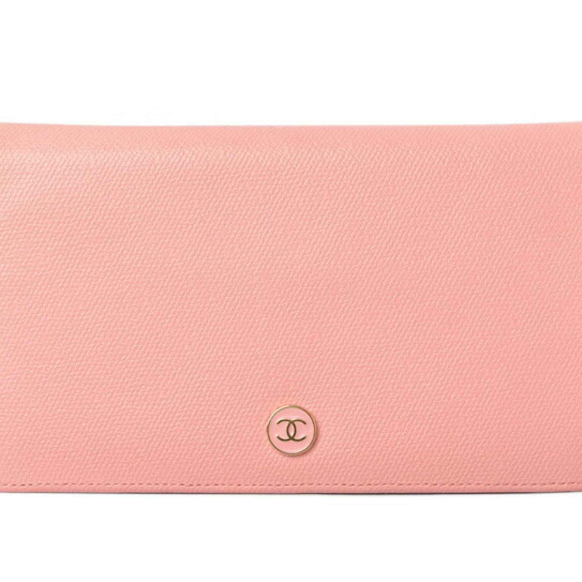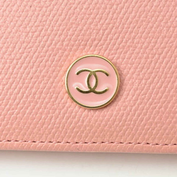 CHANEL Wallet Long Here Mark Button Motif Leather Rose A20904