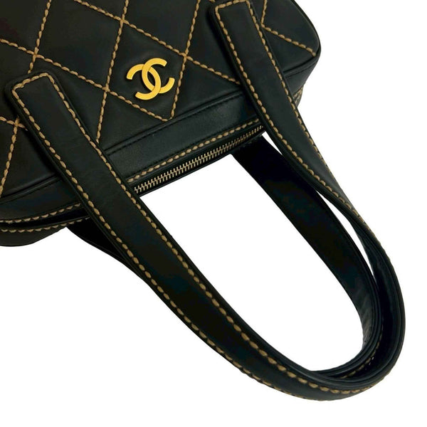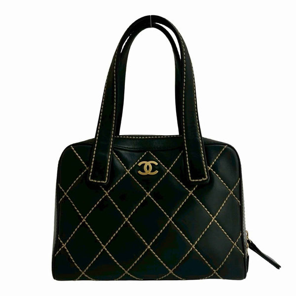 CHANEL Wild Stitch Leather Handbag Mini Tote Bag Black 755-9