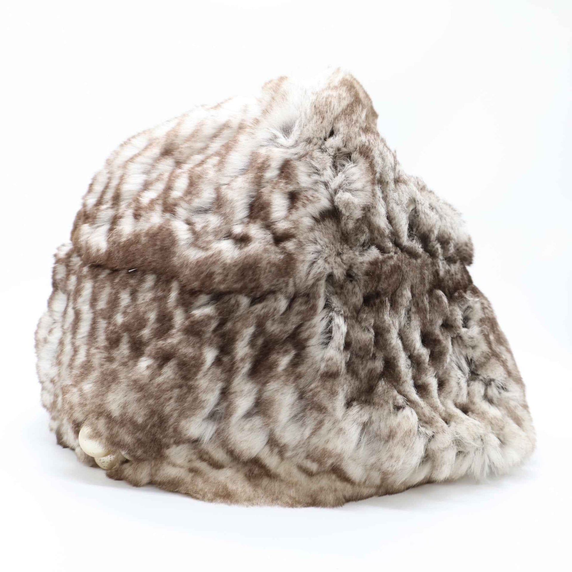 CHANEL Women\'s Rabbit Fur Hat with Imitation Pearl Decoration, Size M, Brown
