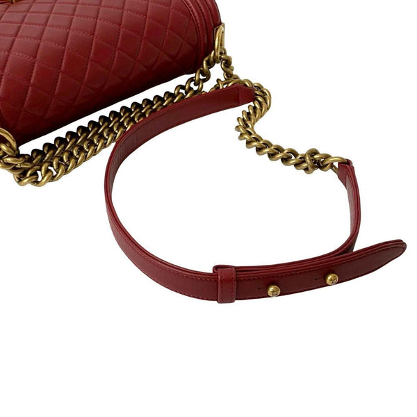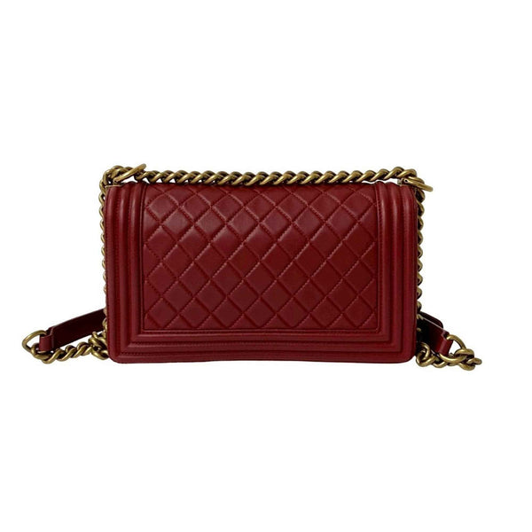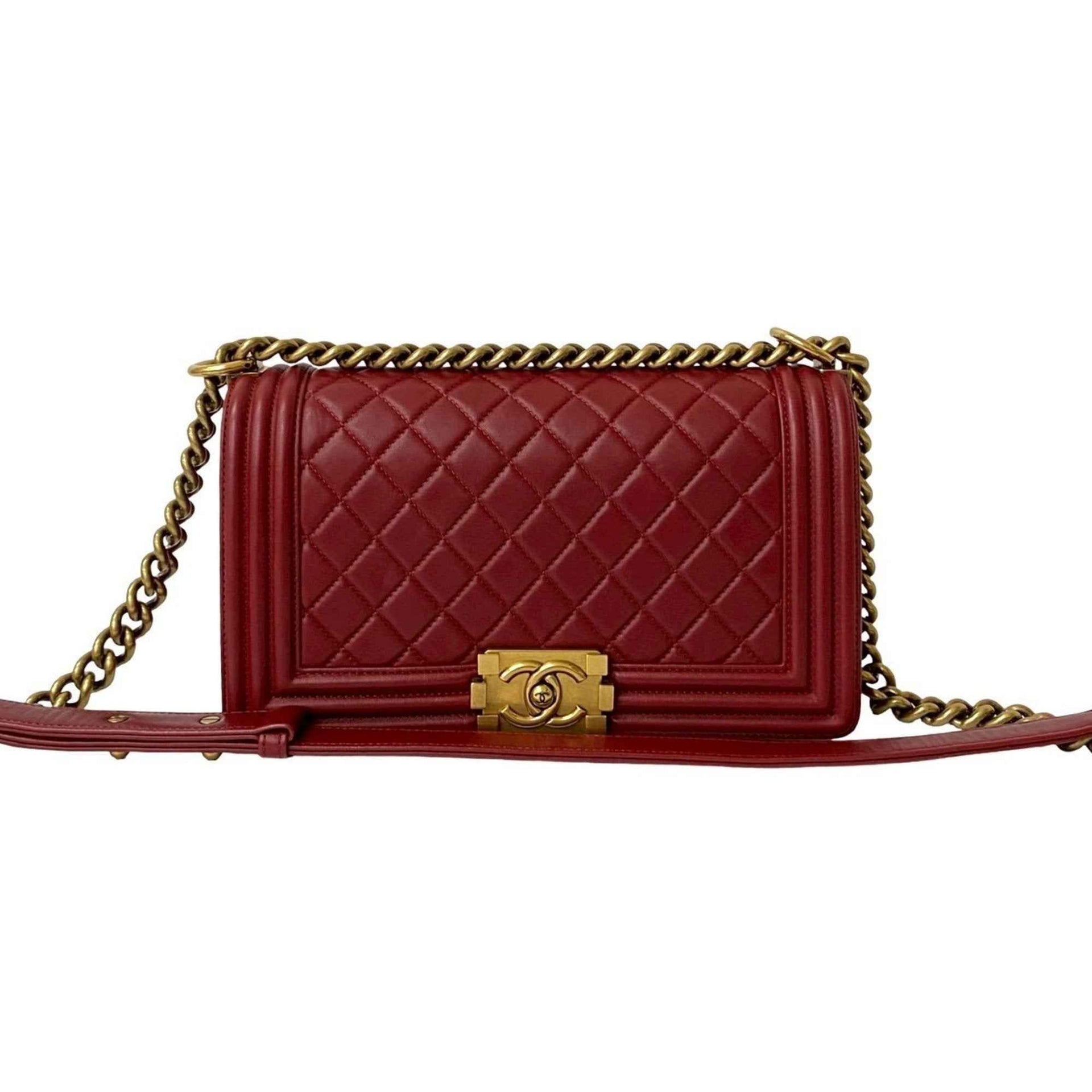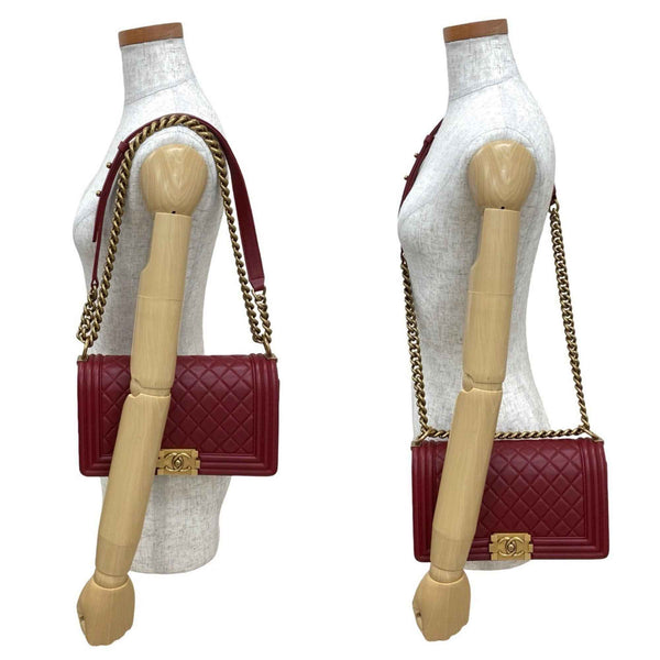 Seal No. 19 CHANEL Boy Chanel Coco Mark Lambskin Genuine Leather Chain Shoulder Bag Red 19279
