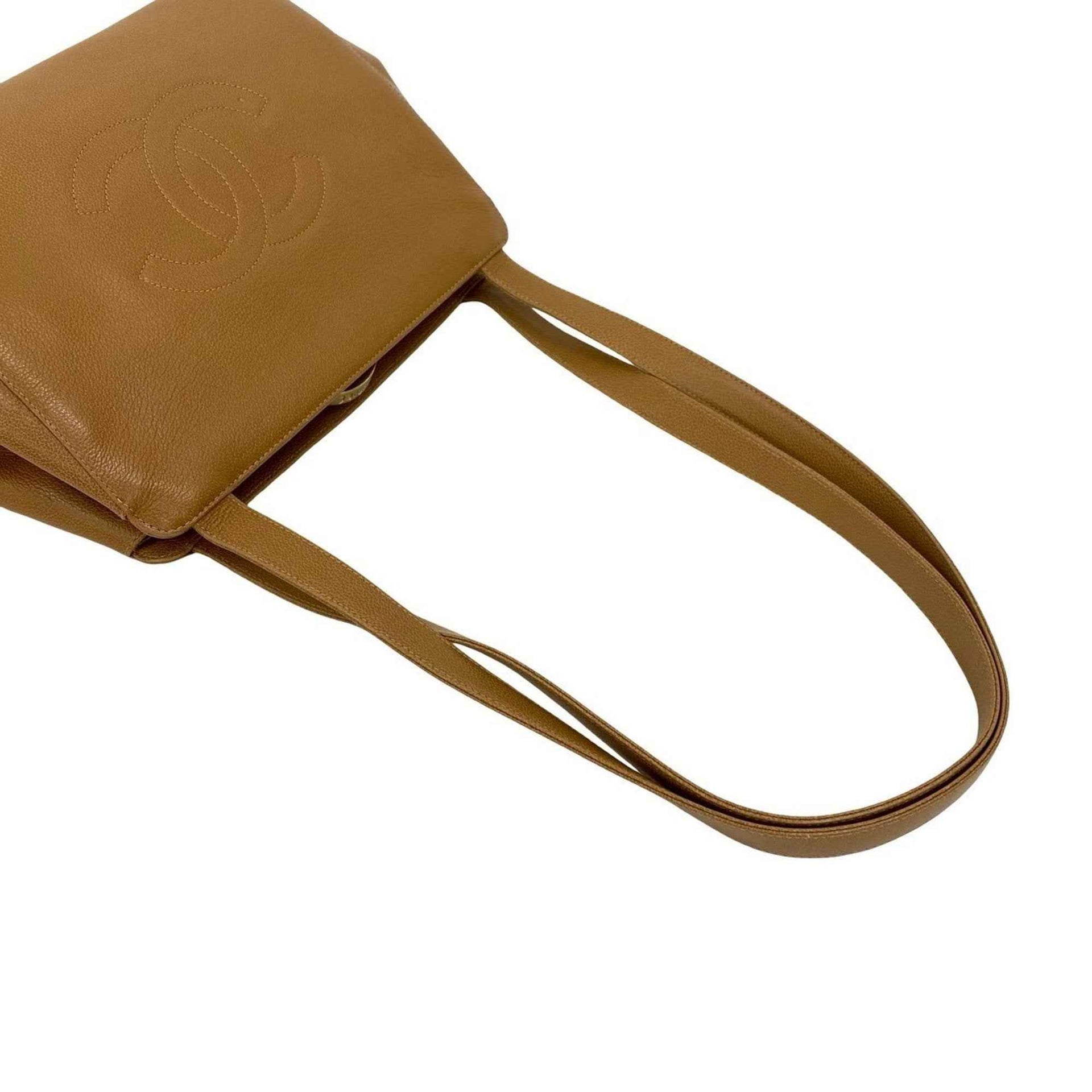 Seal No. 5 CHANEL Coco Mark Caviar Leather Clasp Closure Semi-Shoulder Bag Tote Beige 30252