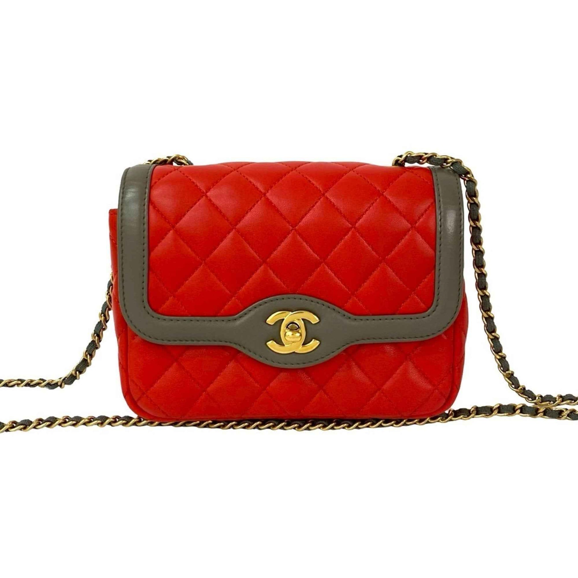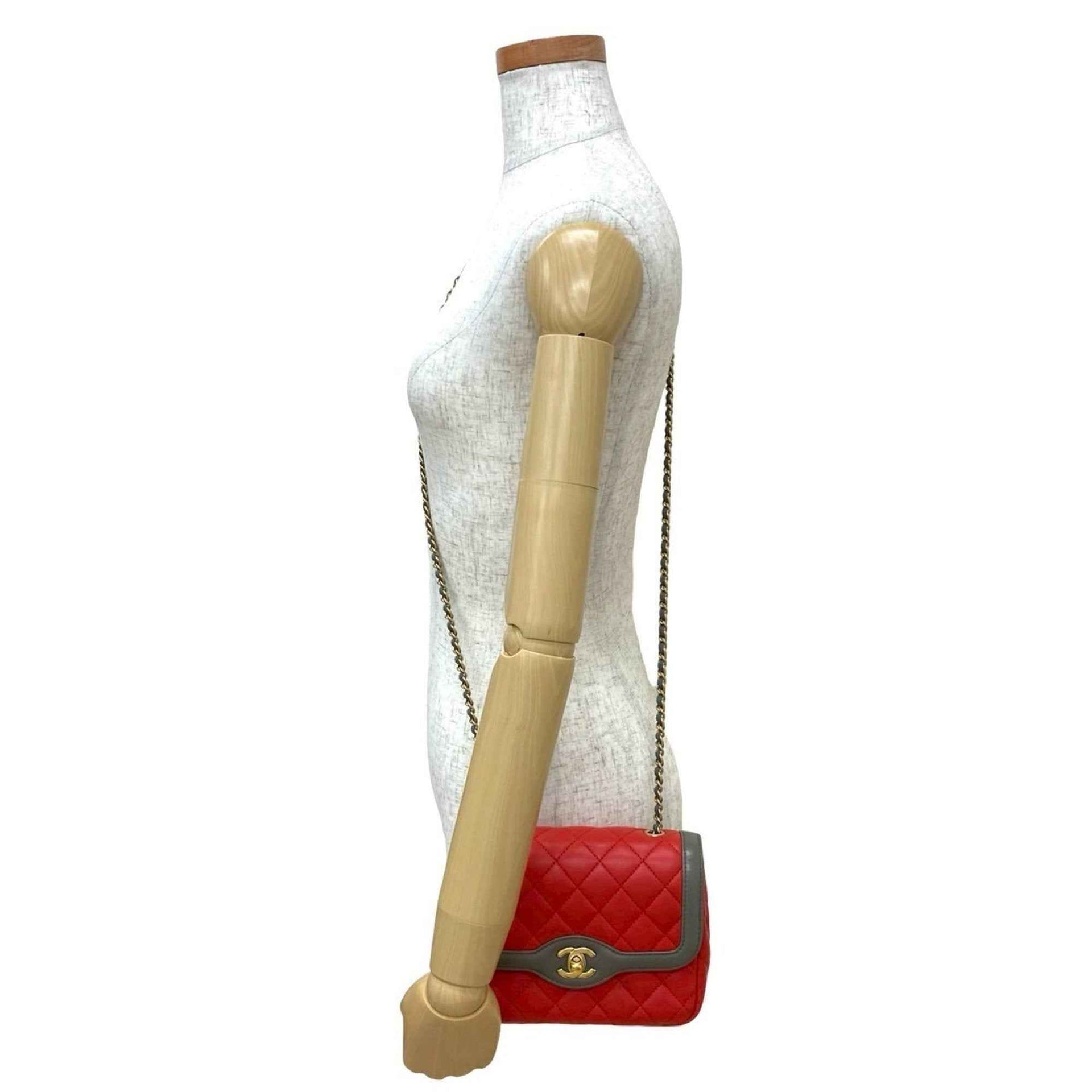 Unused, stored CHANEL Matelasse Coco lambskin chain shoulder bag in red and gray (25895)