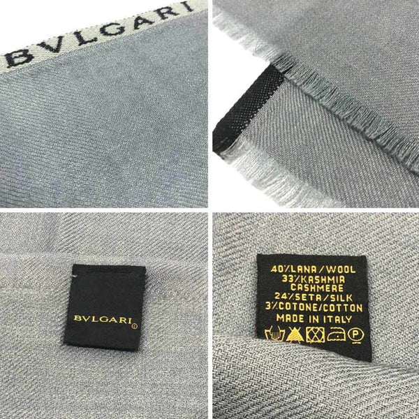 BVLGARI Shawl/Stole in Grayish Blue, Cashmere, Silk, and Wool. Scarf.