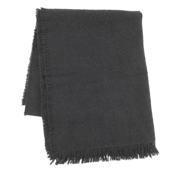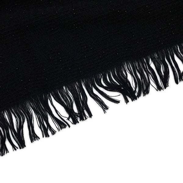 Chanel scarf/muffler with Coco Mark, cashmere, and beads. CHANEL stole/muffler in black.
