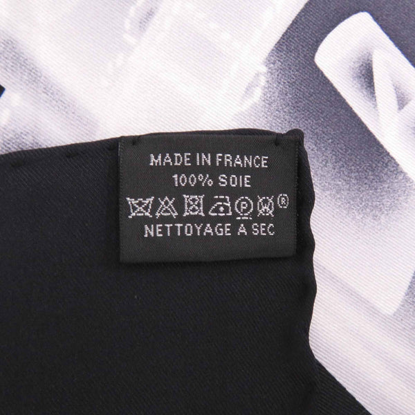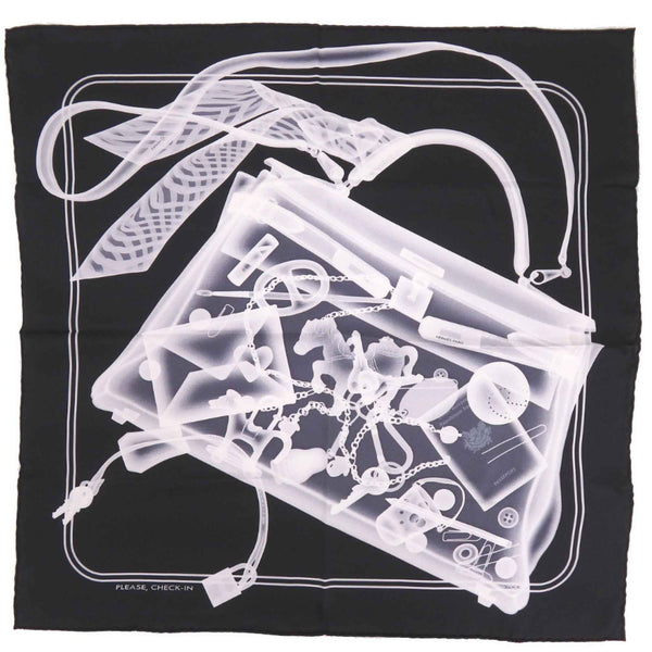 Excellent condition Hermès Carré 70 Please Check In Silk Black and White Scarf Muffler 1054 HERMES
