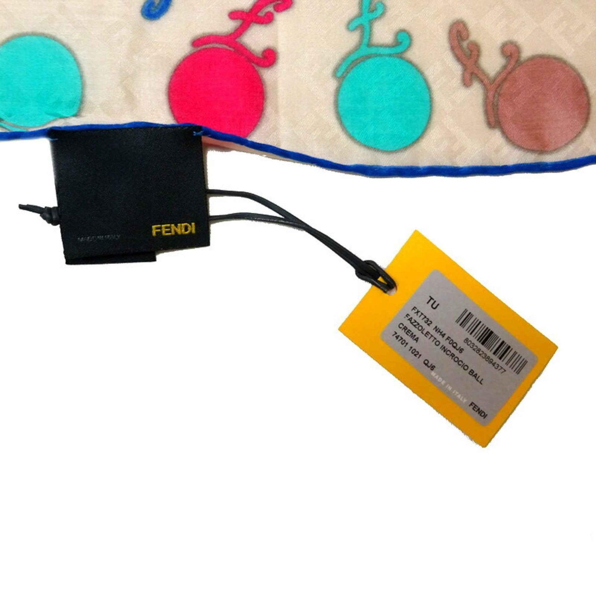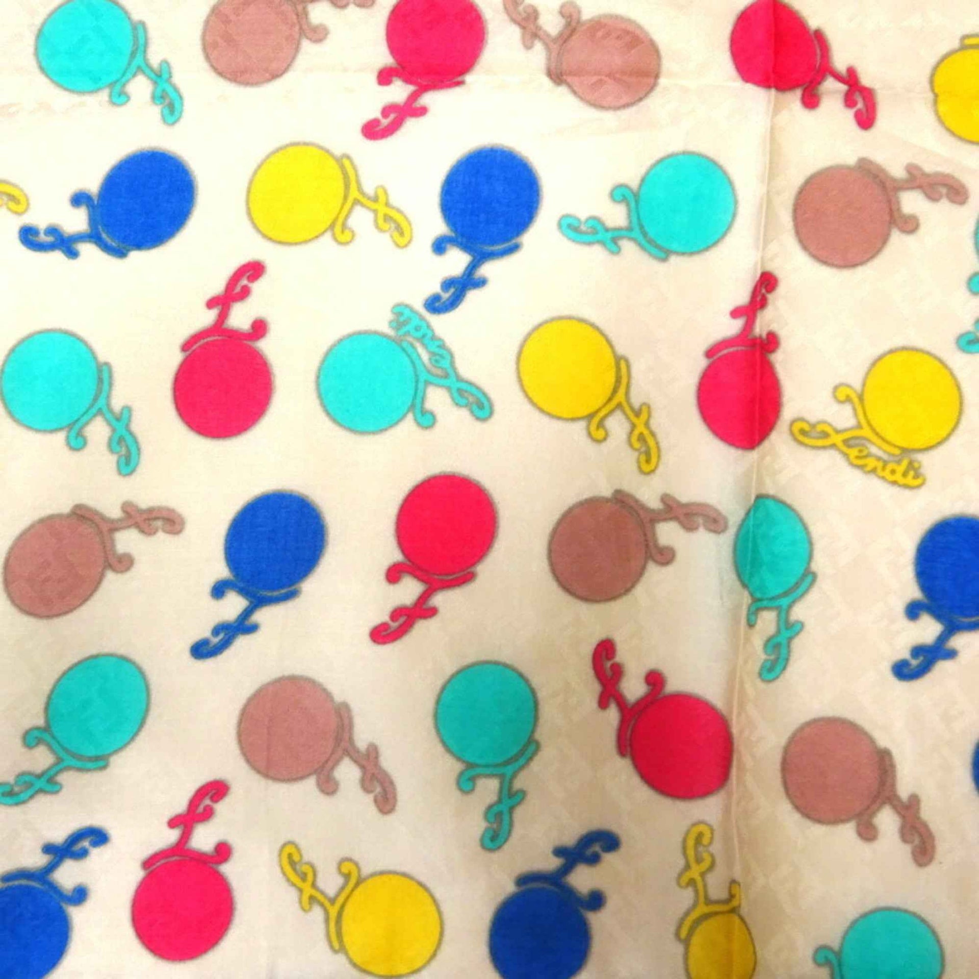 Fendi Ball Pattern Bandana Women\'s Scarf Muffler FXT732 Cotton Beige/Multicolor