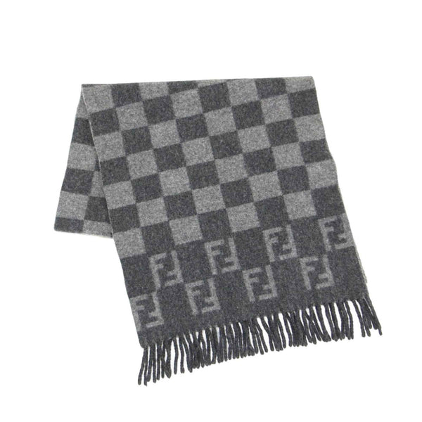 FENDI FF Block Check Wool Scarf/Stole, Gray, Women\'s