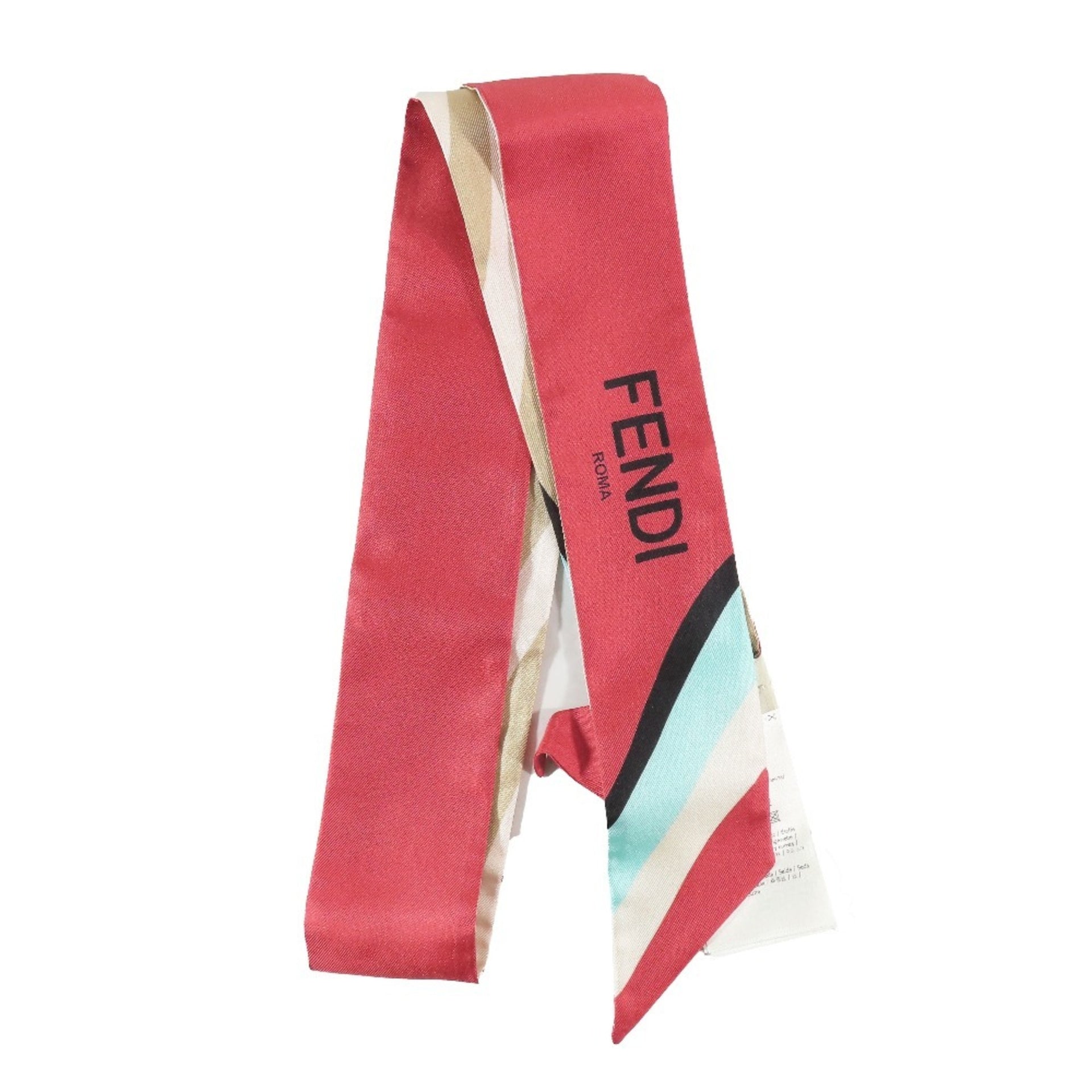 FENDI Wrappy Scarf Bandeau Ribbon 100% Silk Logo FXT011 AET7 Red Blue Beige Women\'s