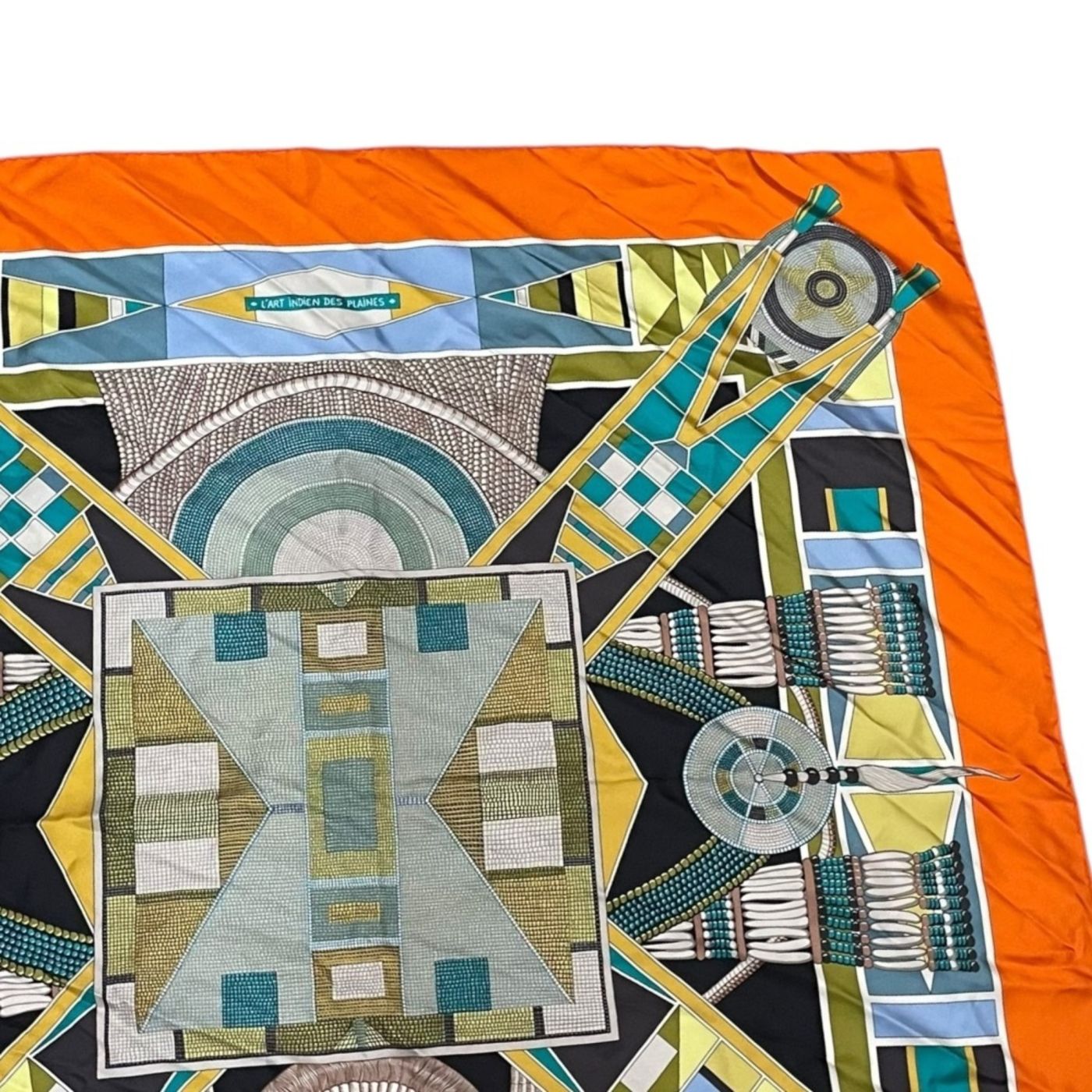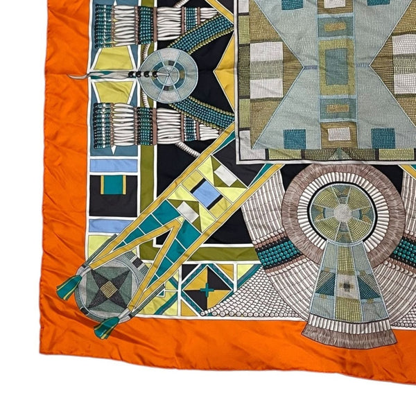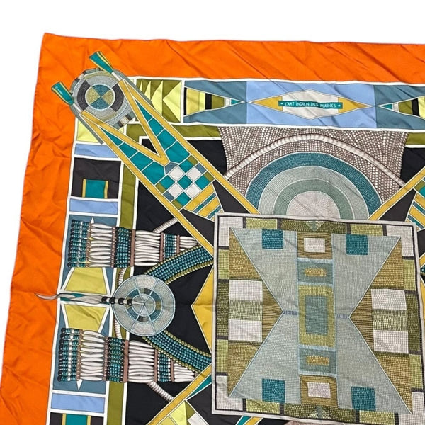 HERMES Carré 90 \"L\'ART INDIEN DES PLAINES\" Plain Indian Art Silk Scarf, Orange, Women\'s