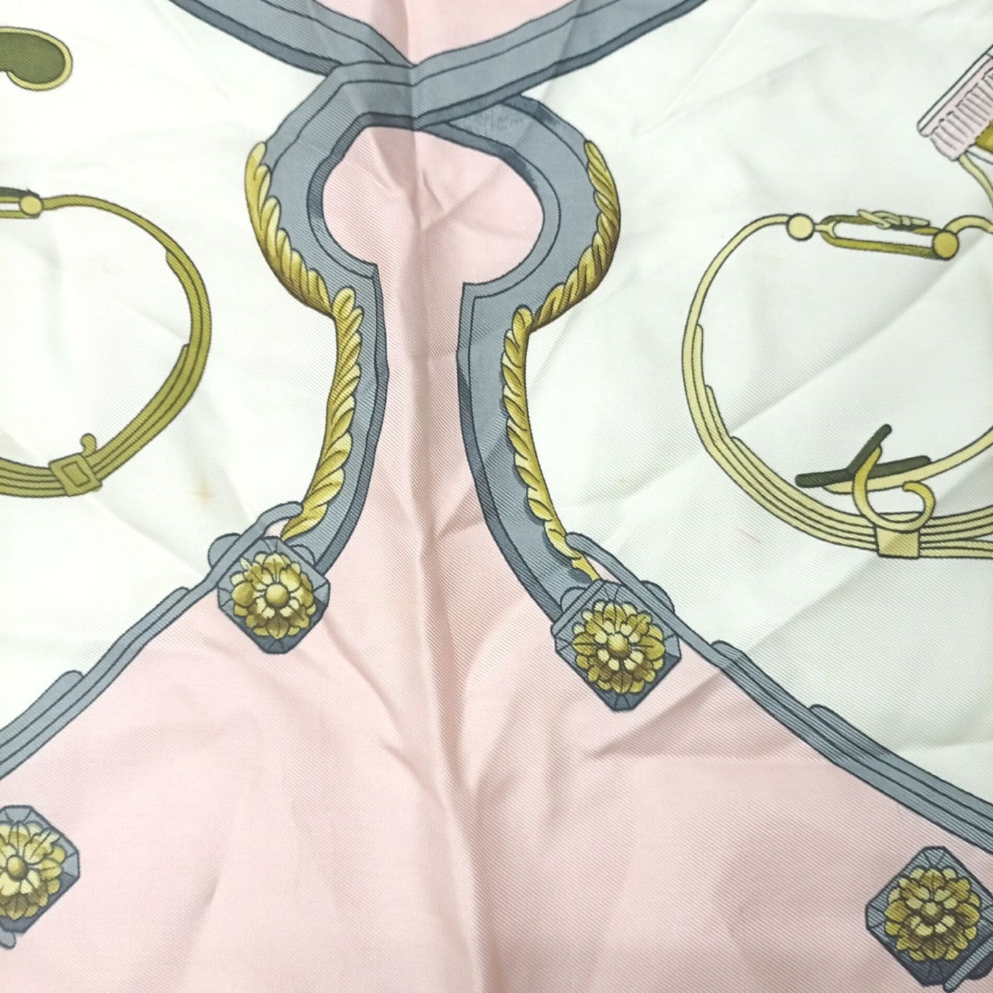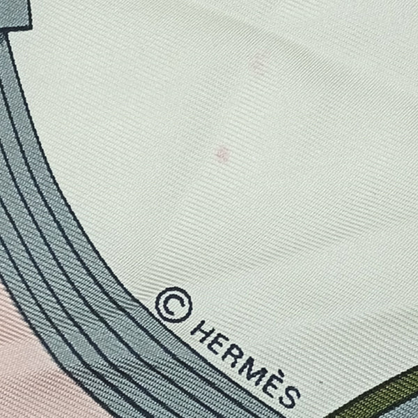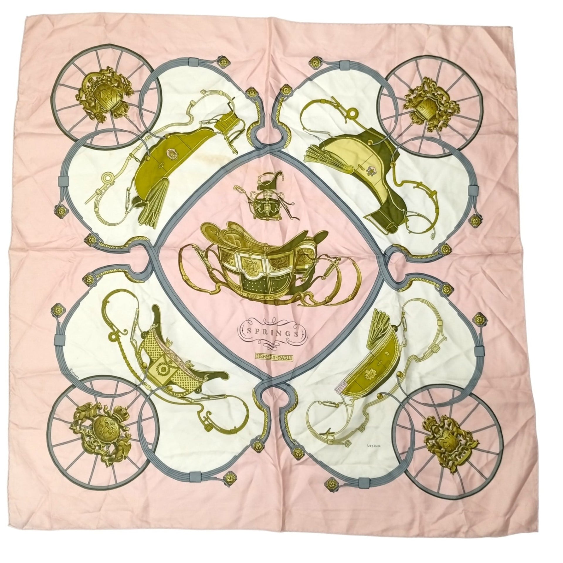 HERMES Carre 90 Scarf Large Muffler Pink SPRINGS Carriage Pattern Stains 100% Silk