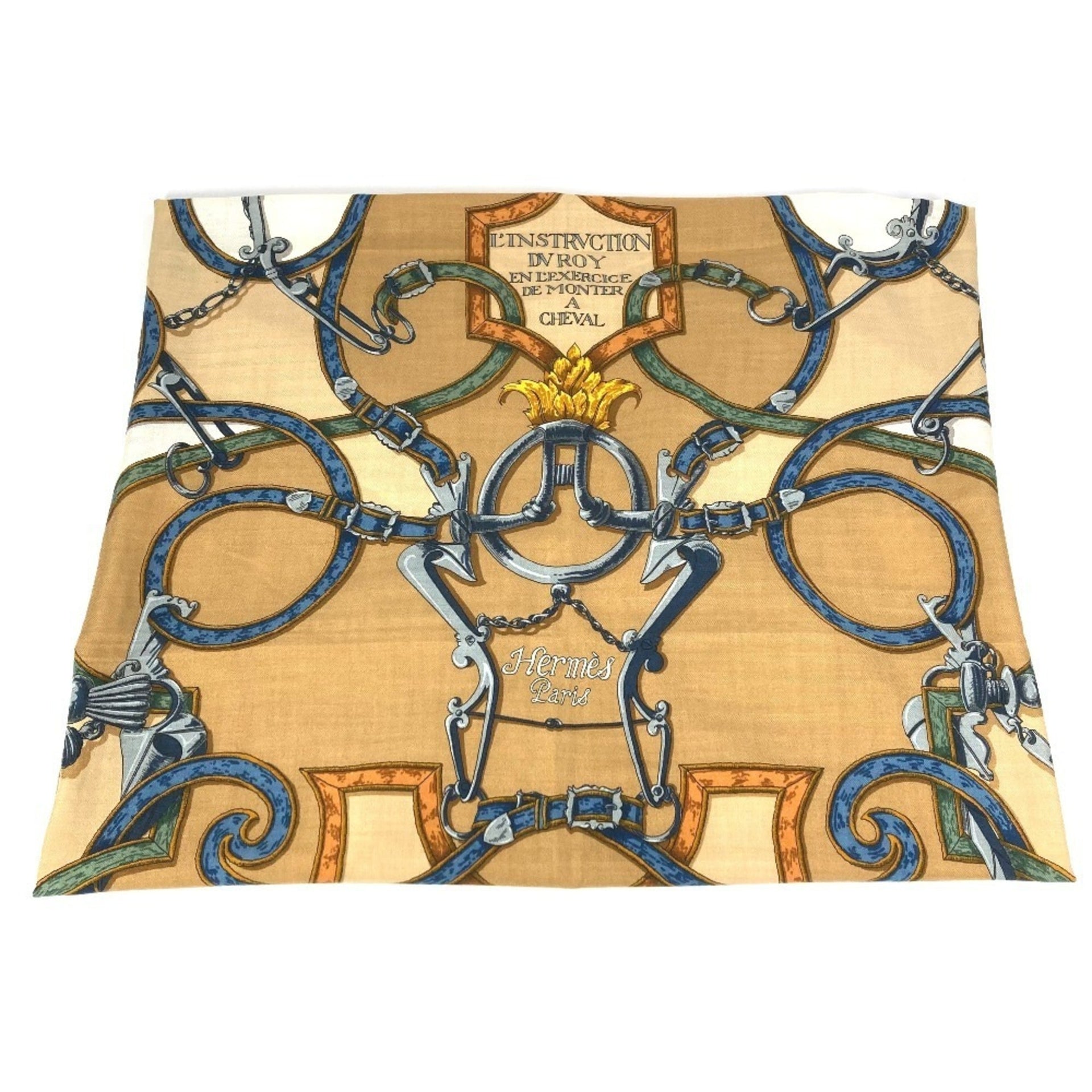 HERMES L\'Instruction du Roy \"The Art of Imperialism\" Carré Jean 140 Shawl/Stole/Large Scarf/Muffler in Silk and Cashmere for Men Women, Beige