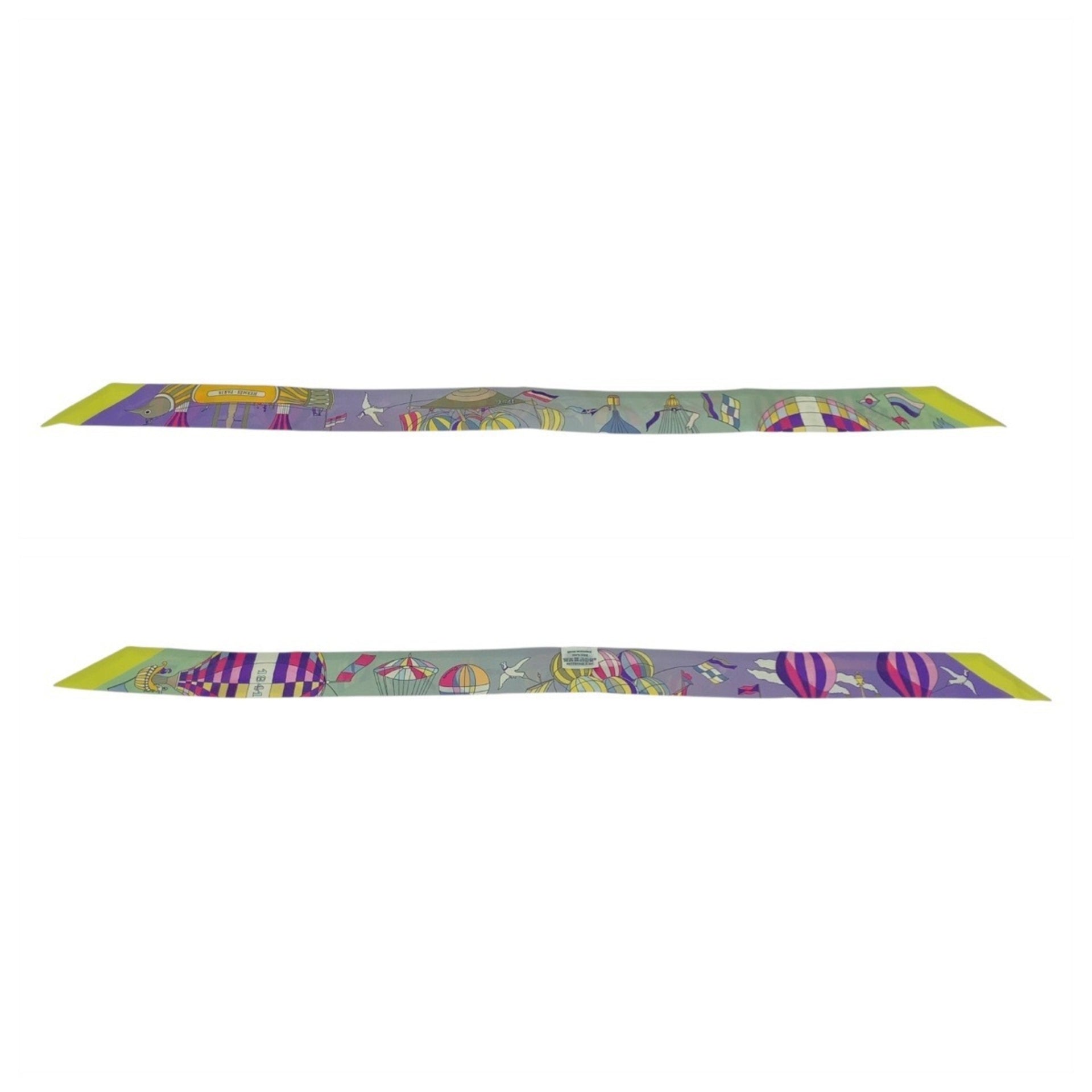 HERMES Madness of the Skies Twilly Scarf in Purple, Green, and Yellow, Ribbon for Women