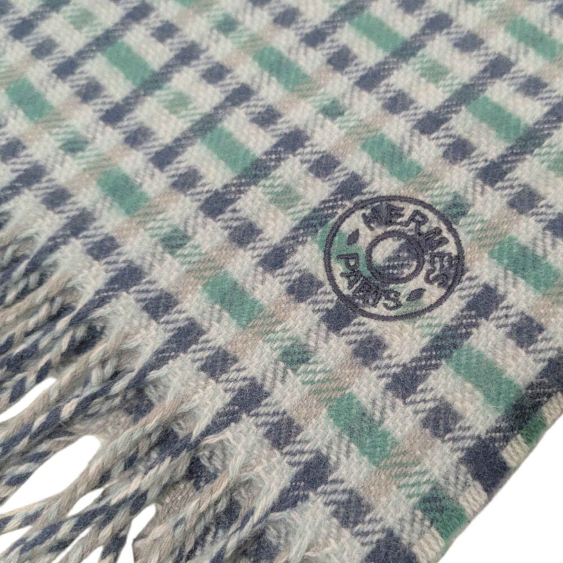 HERMES Scarf/Muffler H Ecosse Cashmere Check Pattern Green Blue Women\'s Men\'s