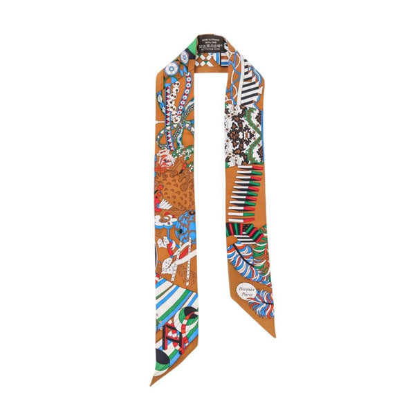 HERMES Twilly \"De l\'Ombrelle aux Duels Vieux\" Silk Scarf/Muffler in Camel Vert Blue for Women